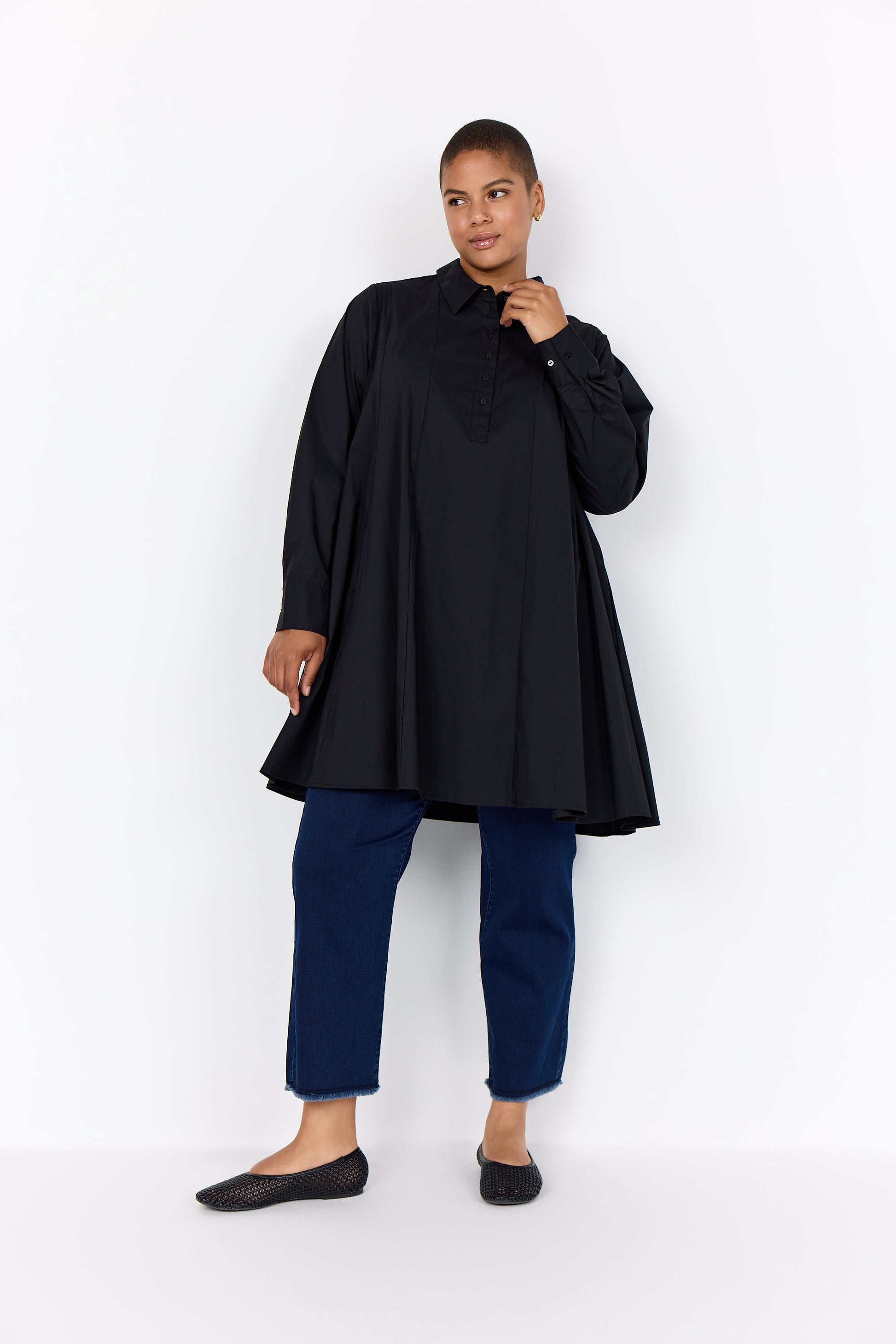 En svart A-formad skjorta med klassisk skjortkrage & långa ärmar, denna kan du både bära till byxor eller leggings.