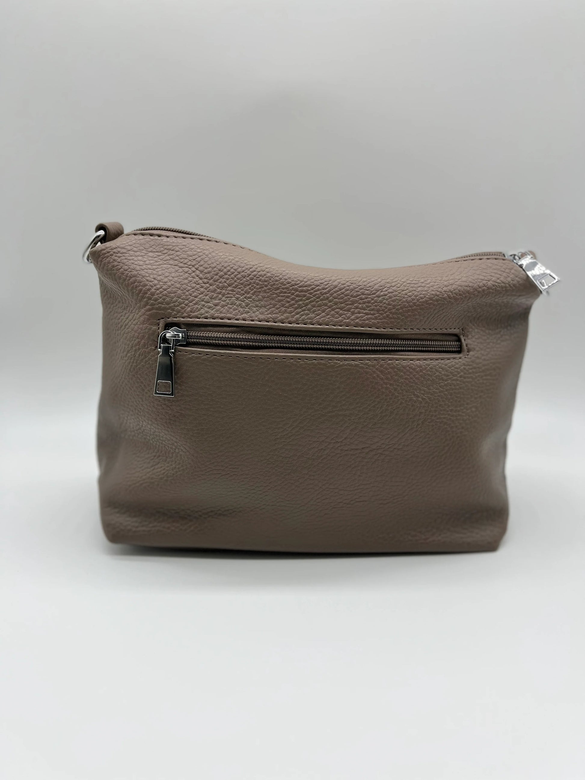 En perfekt vardags väska med ett brett axelband som du kan justera längden på, det är silvriga dragkedjor på.