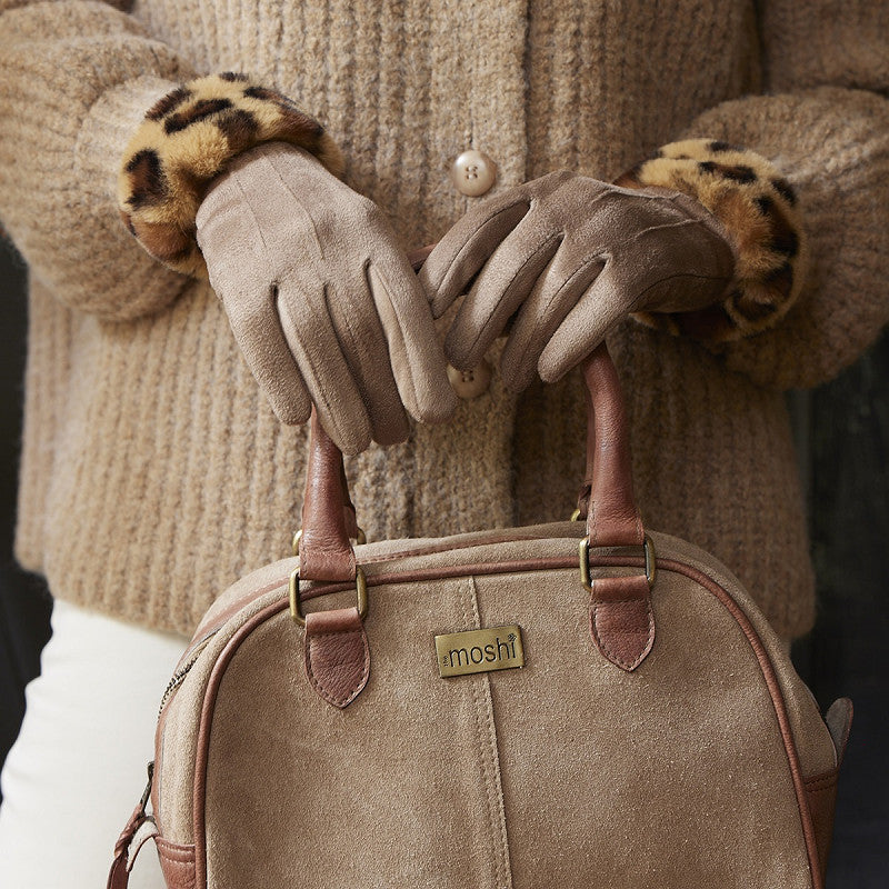 Eleganta fingervantar med en bred mudd i leopard print.