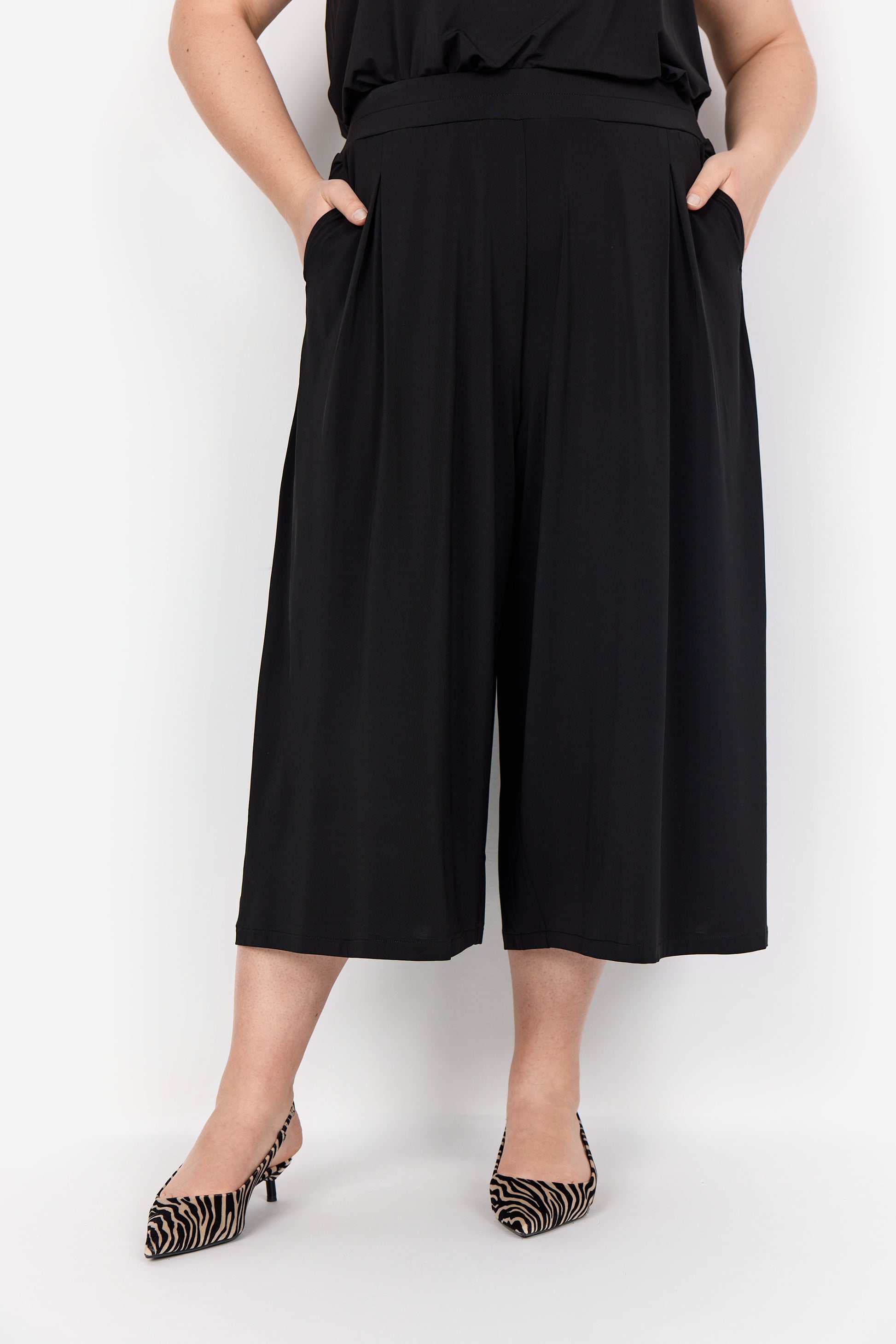 Läckra byxor med vida ben och resår i midjan, det är en 7/8 dels benlängd.