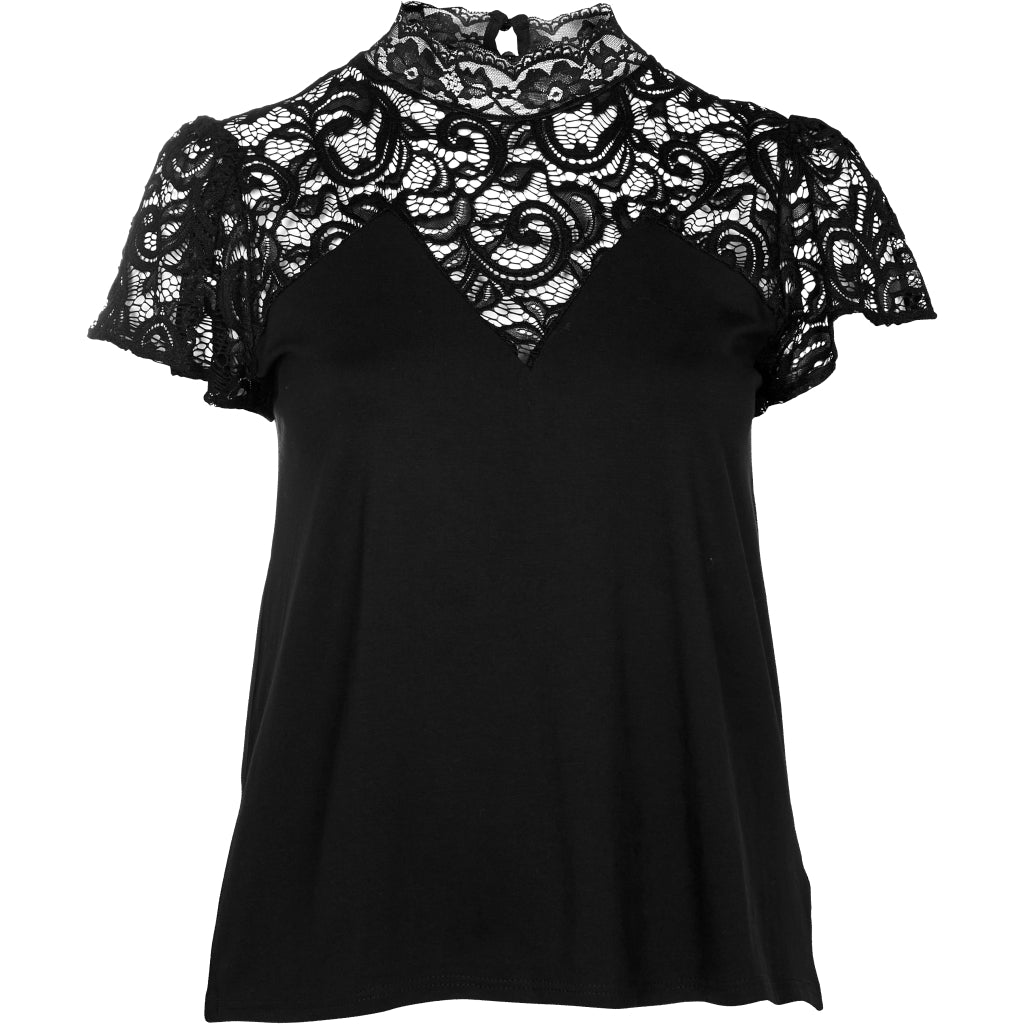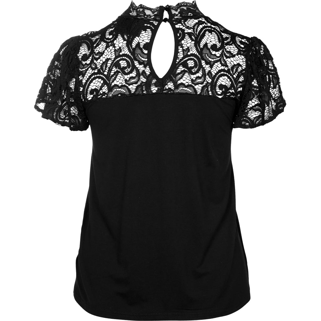 Jersey-T-shirt med vackraste spetsdetaljer över bröstet, på axlarna och vid halsen. Baktill finns en fin droppformad stängning.