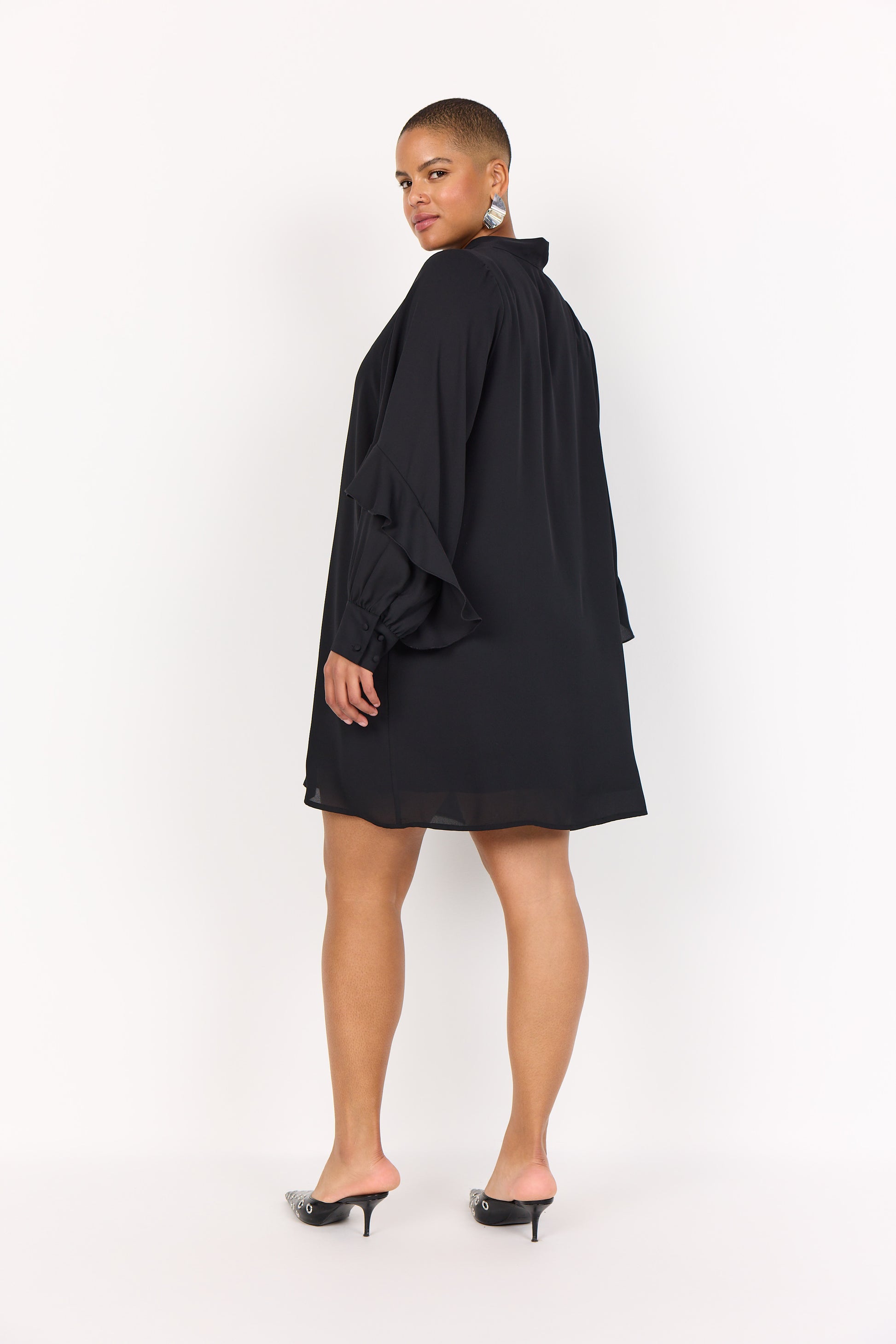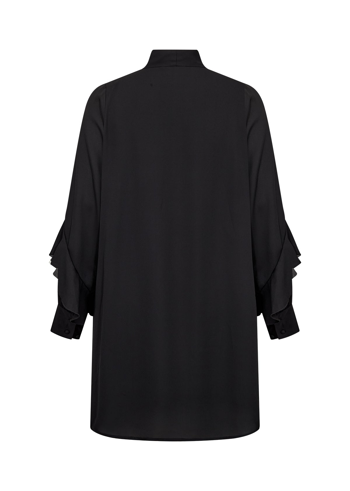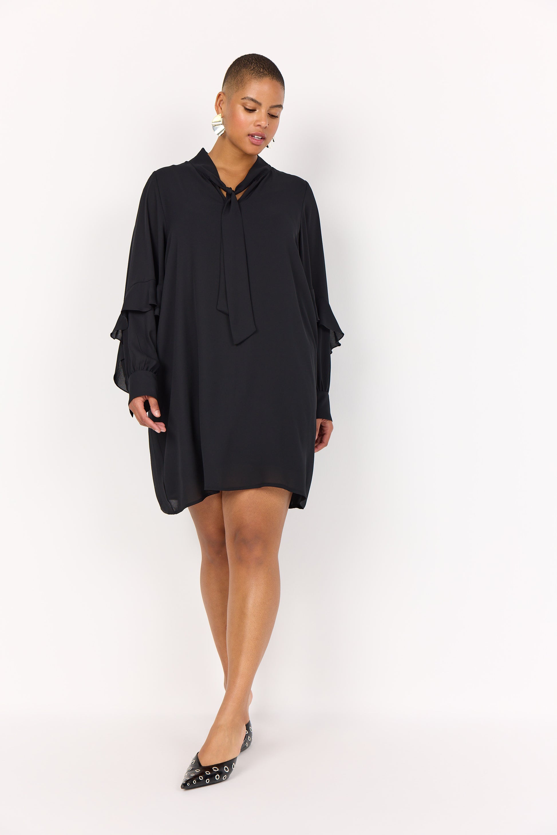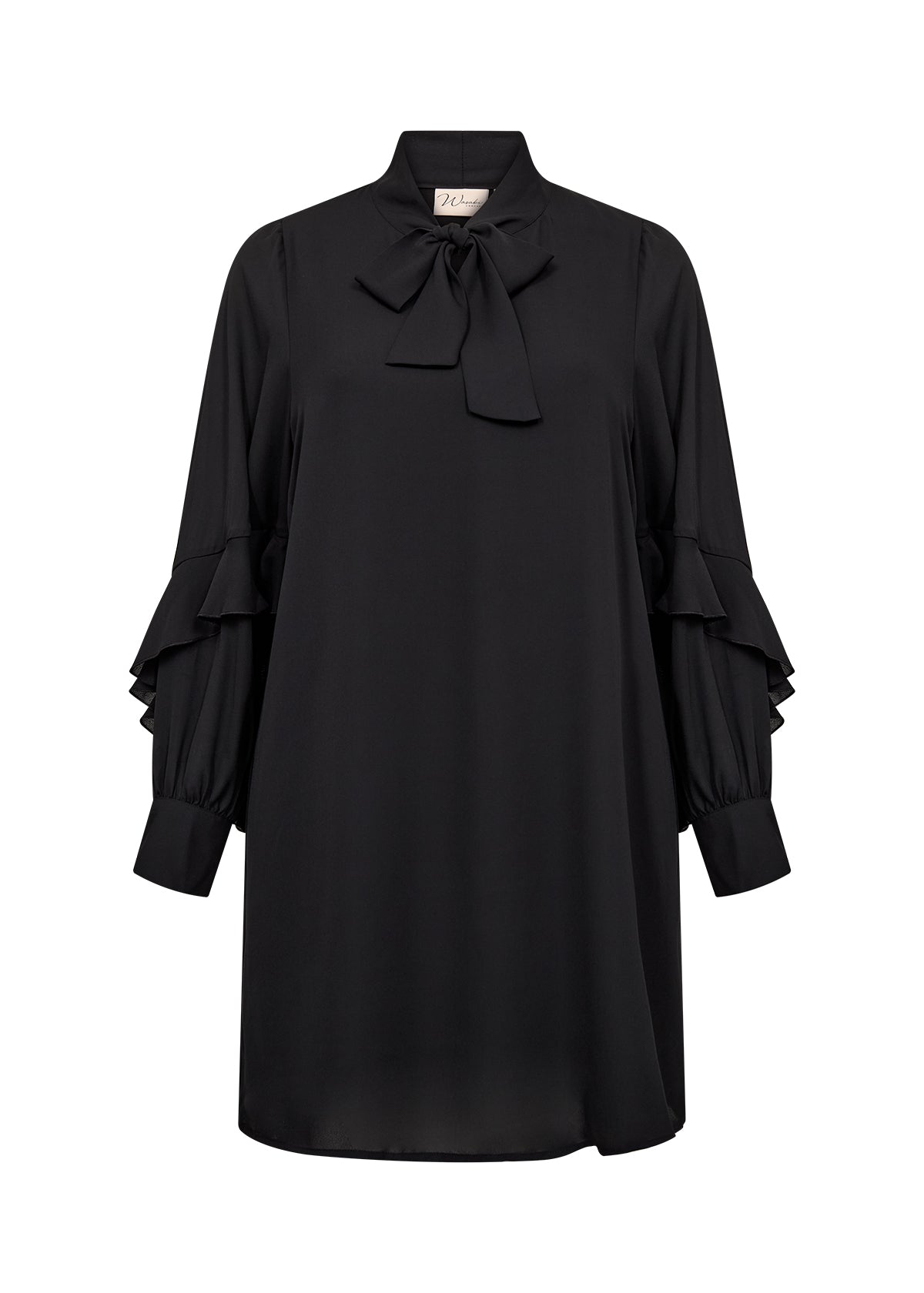 Festlig svart klänning med långa ärmar och knytning framtill, denna kan du både bära till strumpbyxor och leggings.