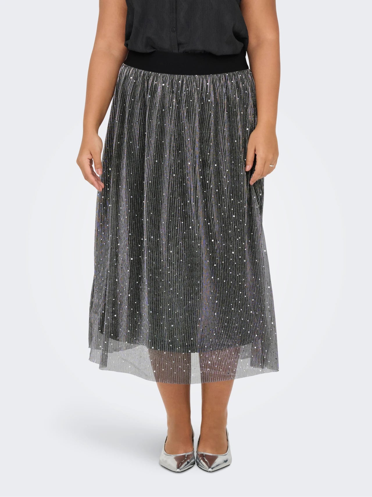 Festlig kjol med resår i midjan och tyll, det är silver detaljer i kjolen som ger en extra effekt, matcha den med en stickad tröja eller fin blus.