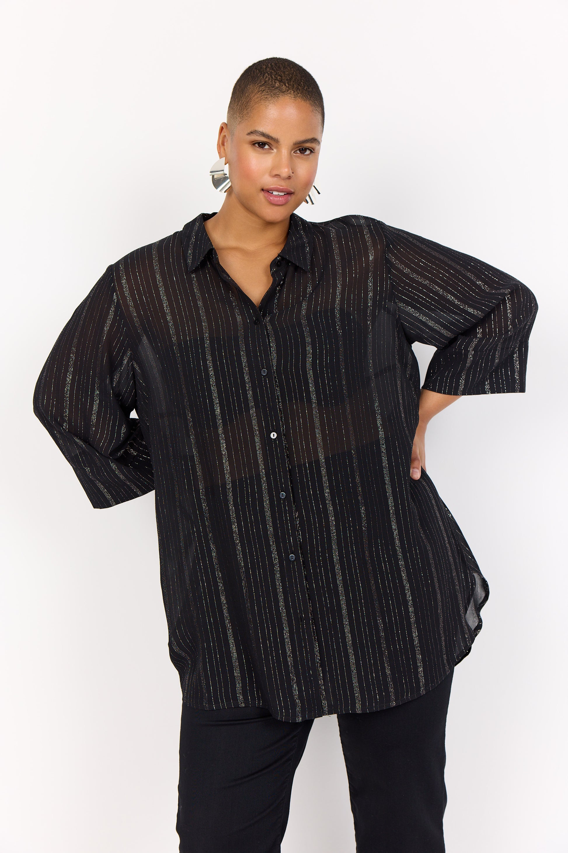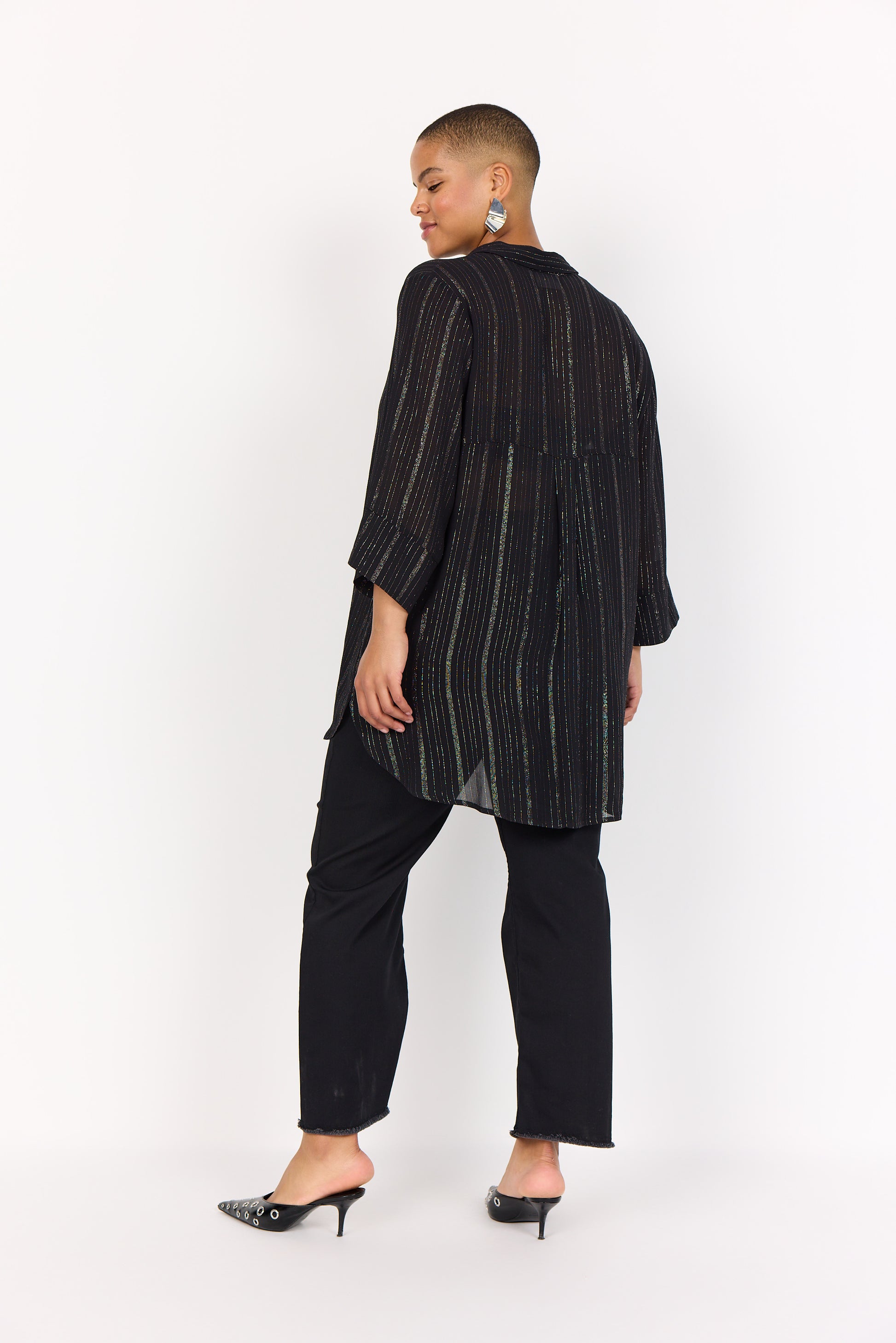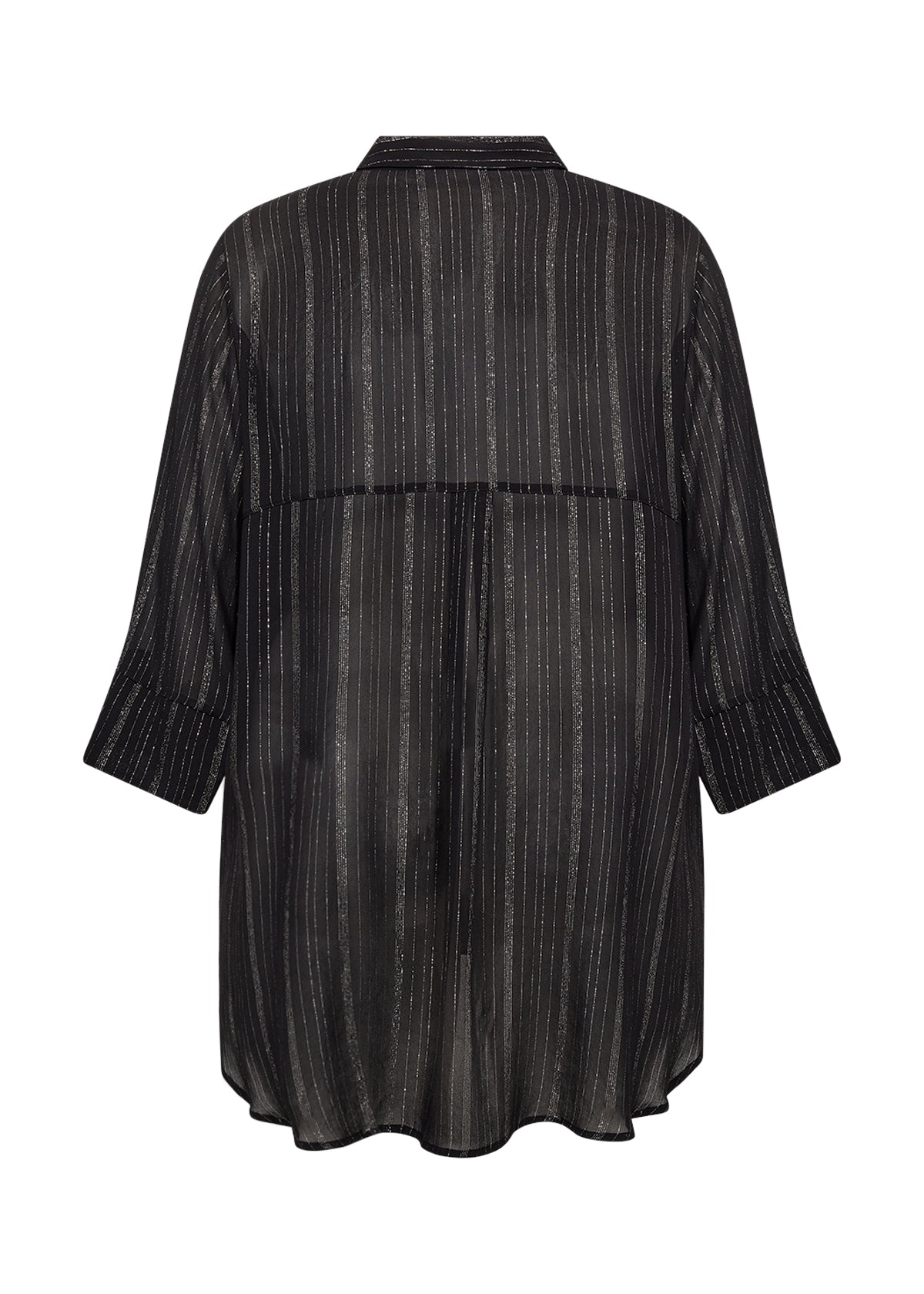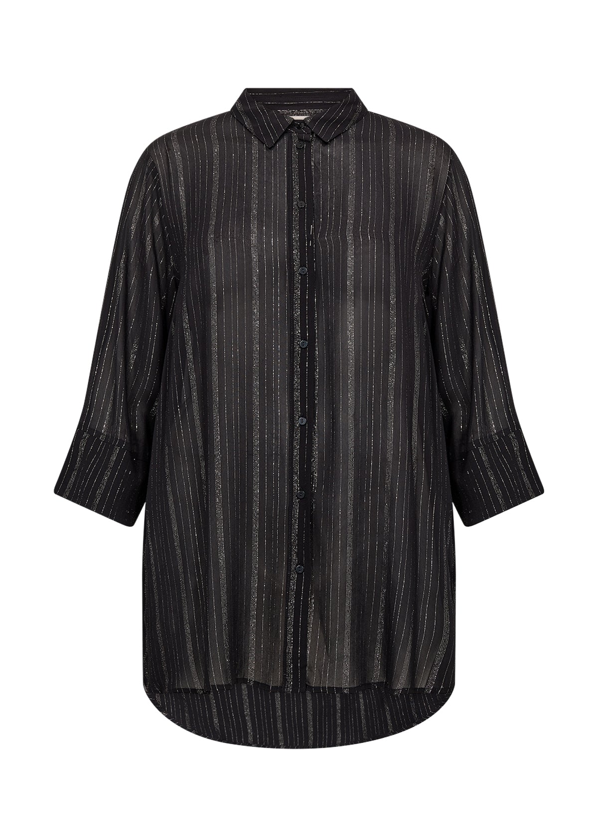 Skjortan har en klassisk krage, knappstängning och eleganta vertikala glitterränder. Kombinera den med skräddarsydda byxor eller jeans för en sofistikerad look.