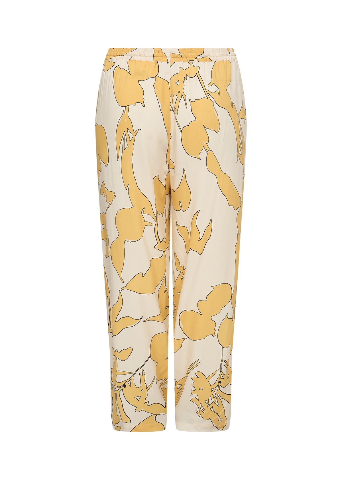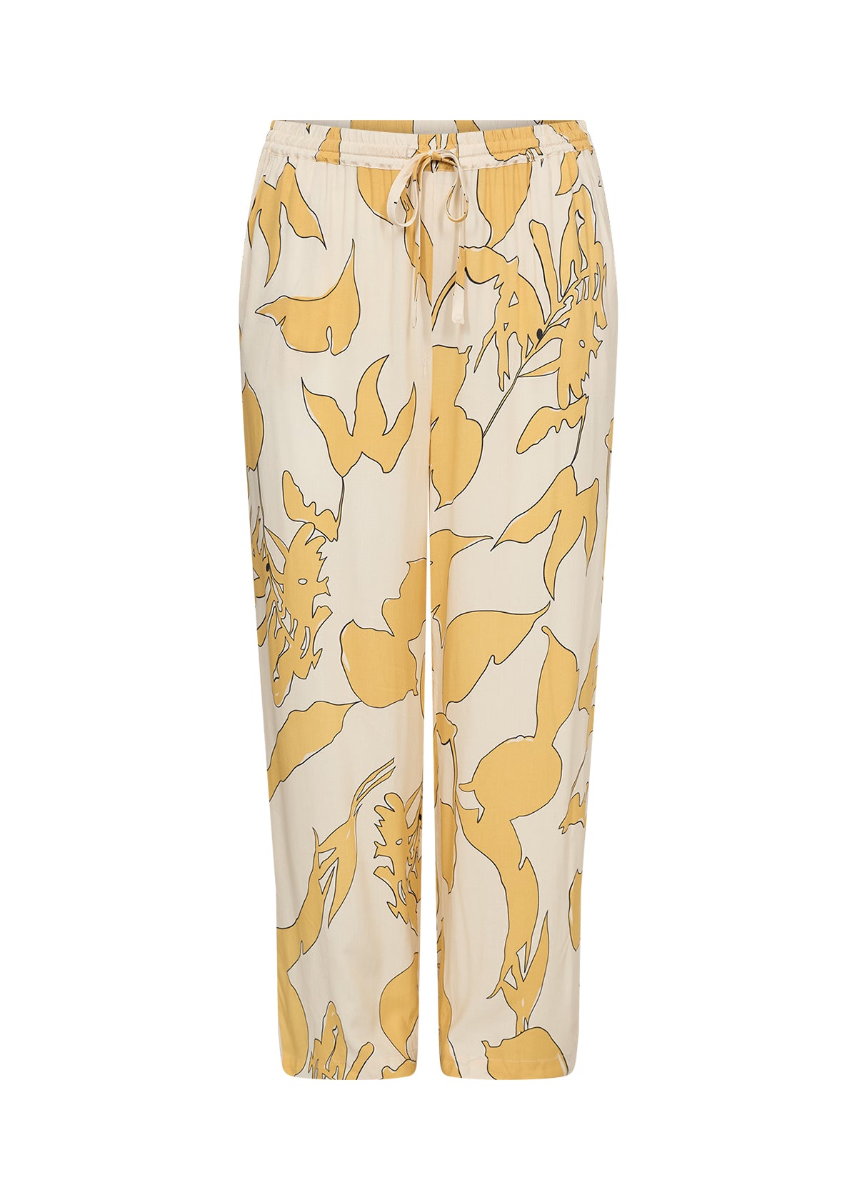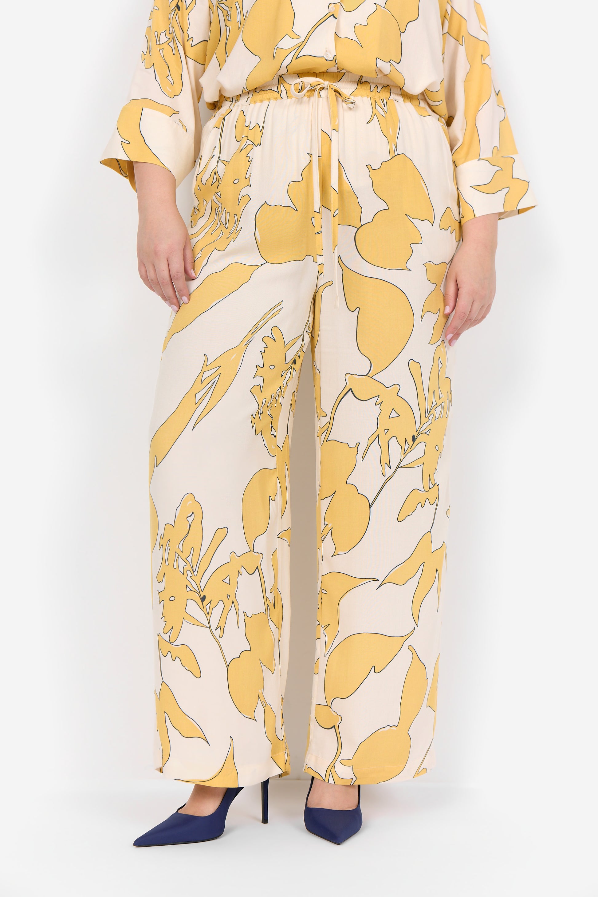 Vid byxa med resår i midjan med ett snöre du kan dra åt.