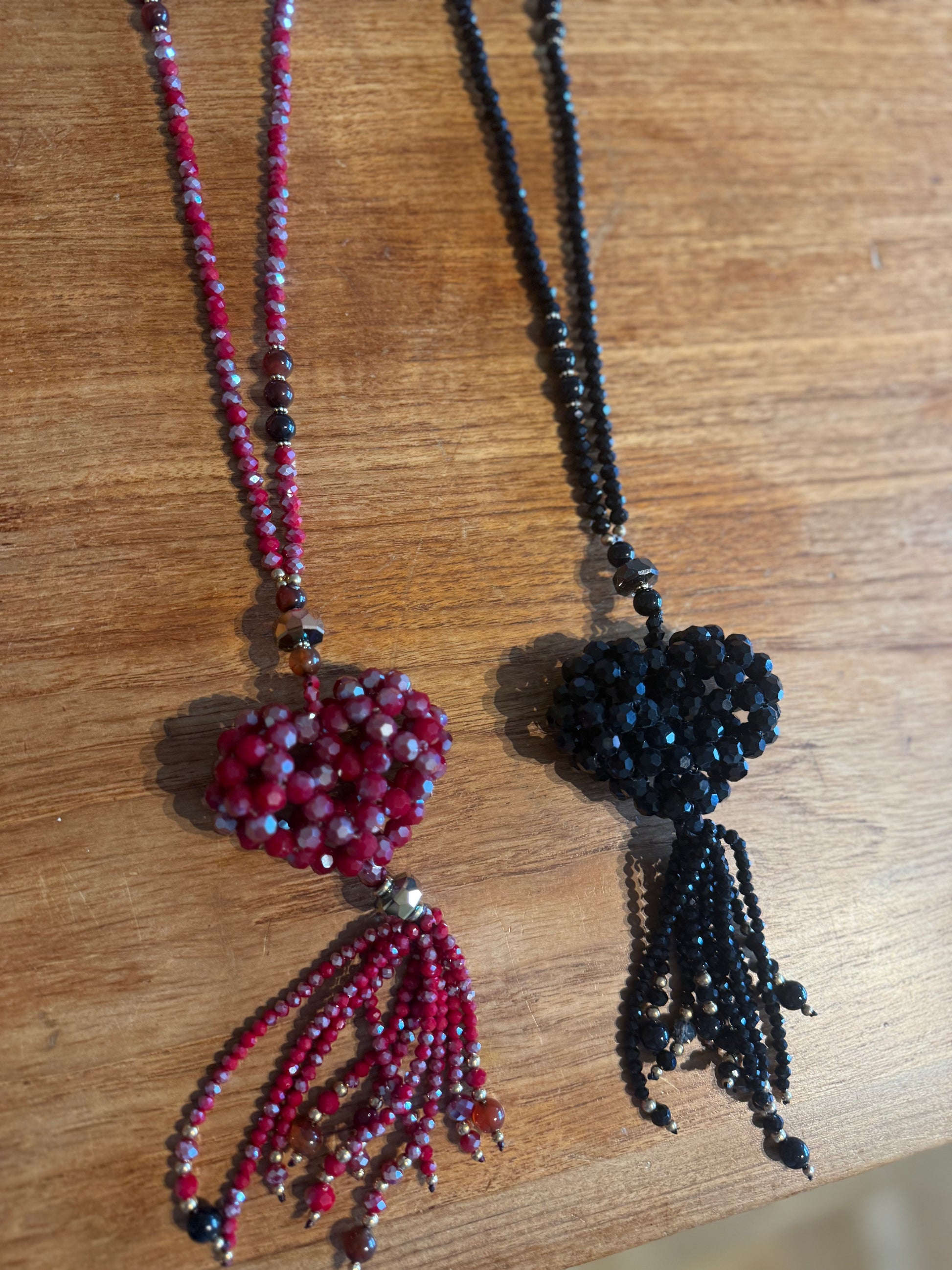 Snyggt halsband med pärlor, i slutet av halsbandet är det ett stort hjärta i pärlor som ger en snygg effekt.