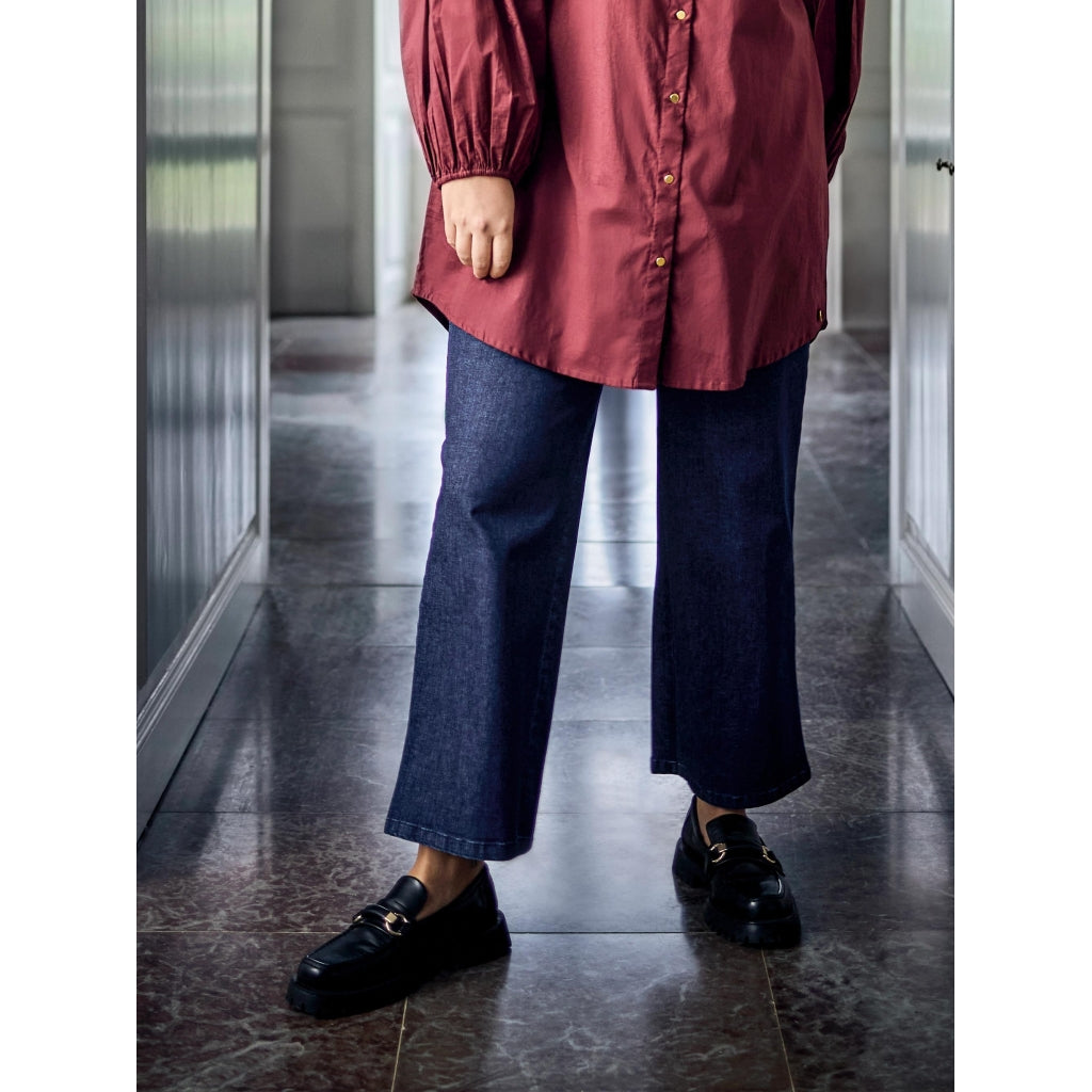 Sköna jeans med vida ben, det är hög midja med knäppning och gylf.