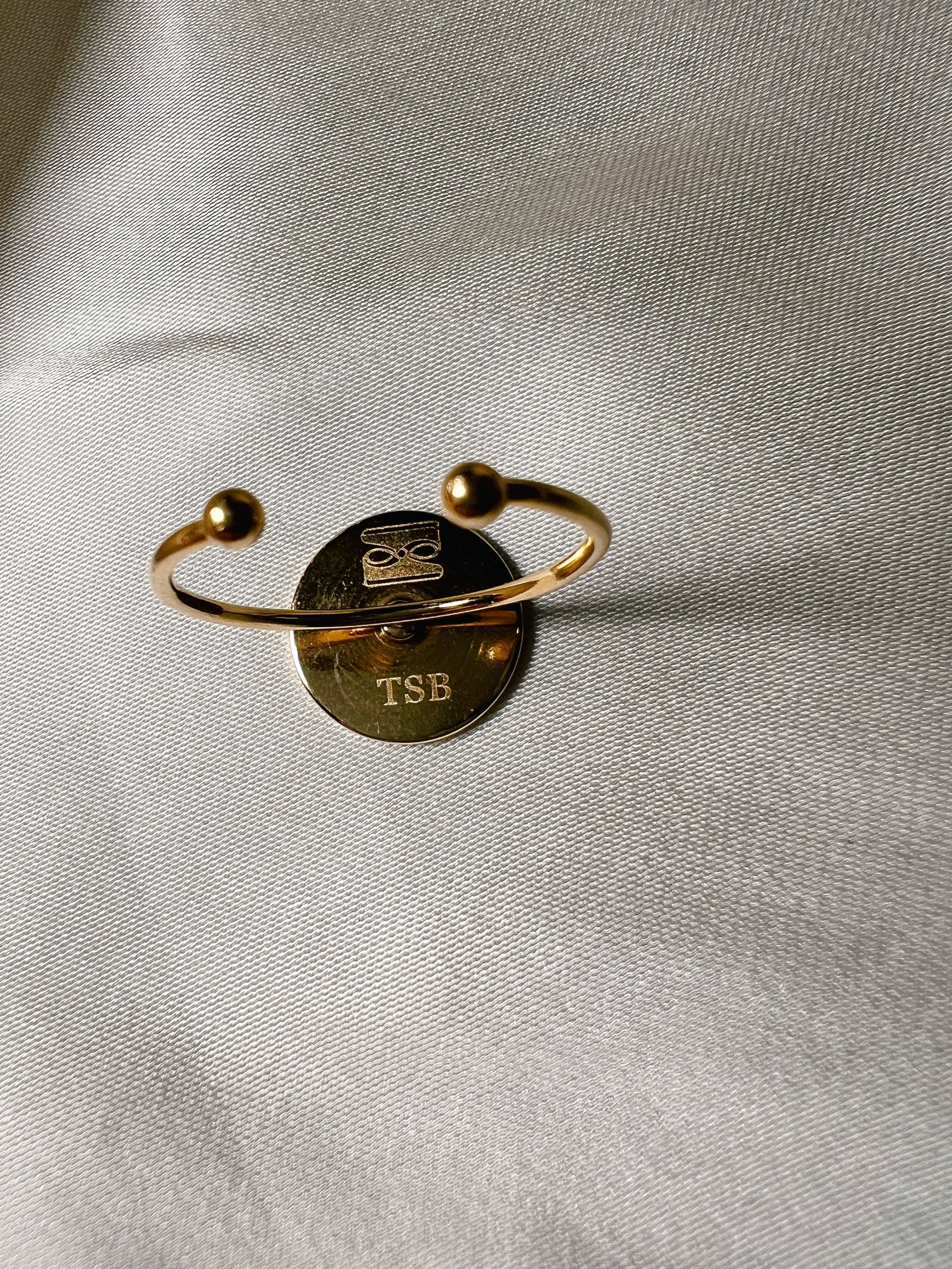 En elegant och stilfull justerbar ring med en rund, slät button base på 13 mm. Ringen är 18K guldpläterad och kan bäras som den är eller stylas med valfri Button Cover.