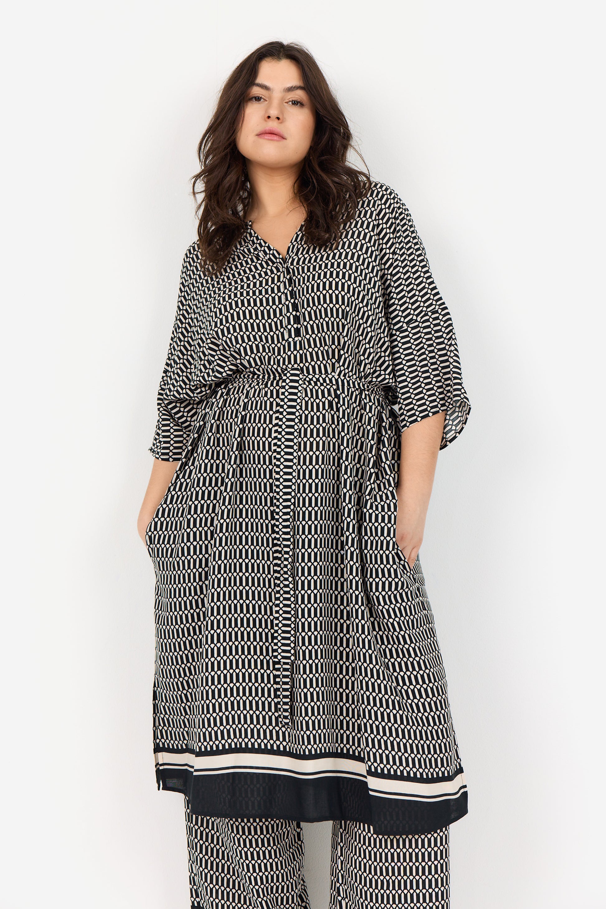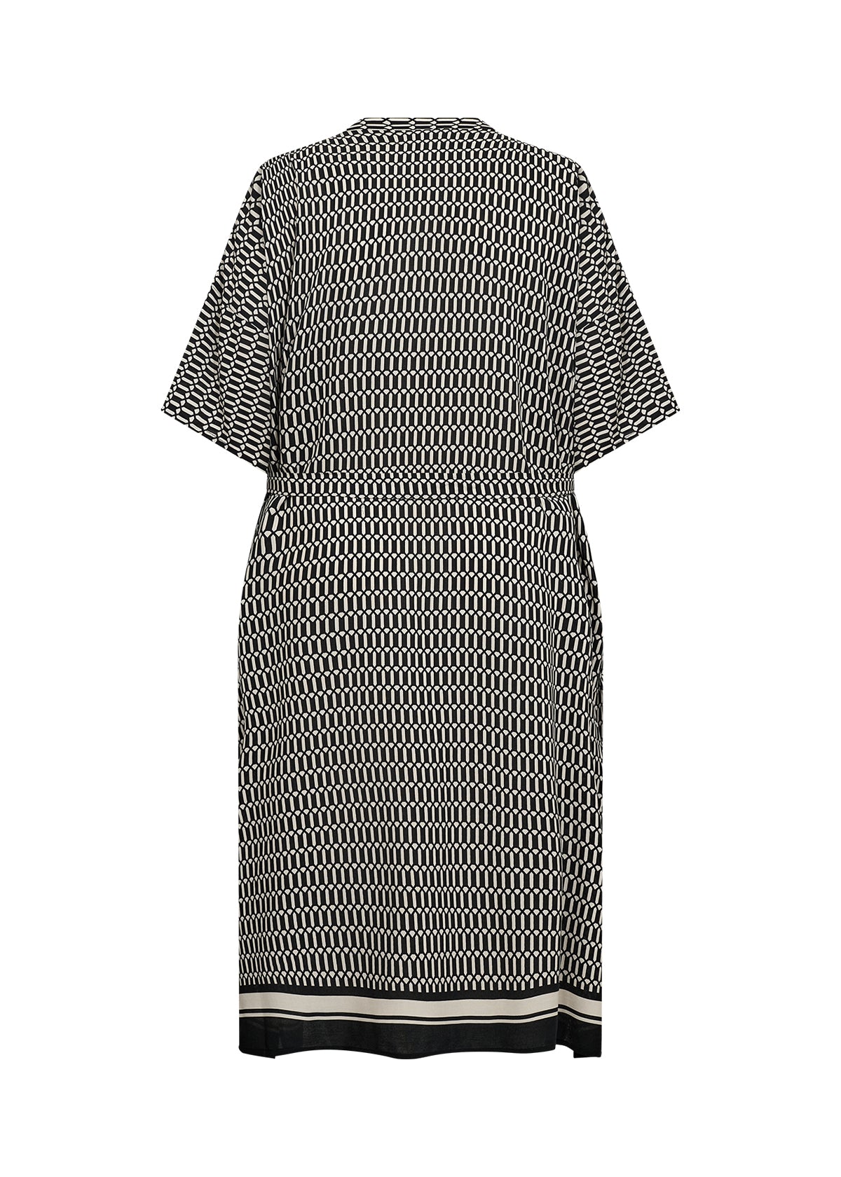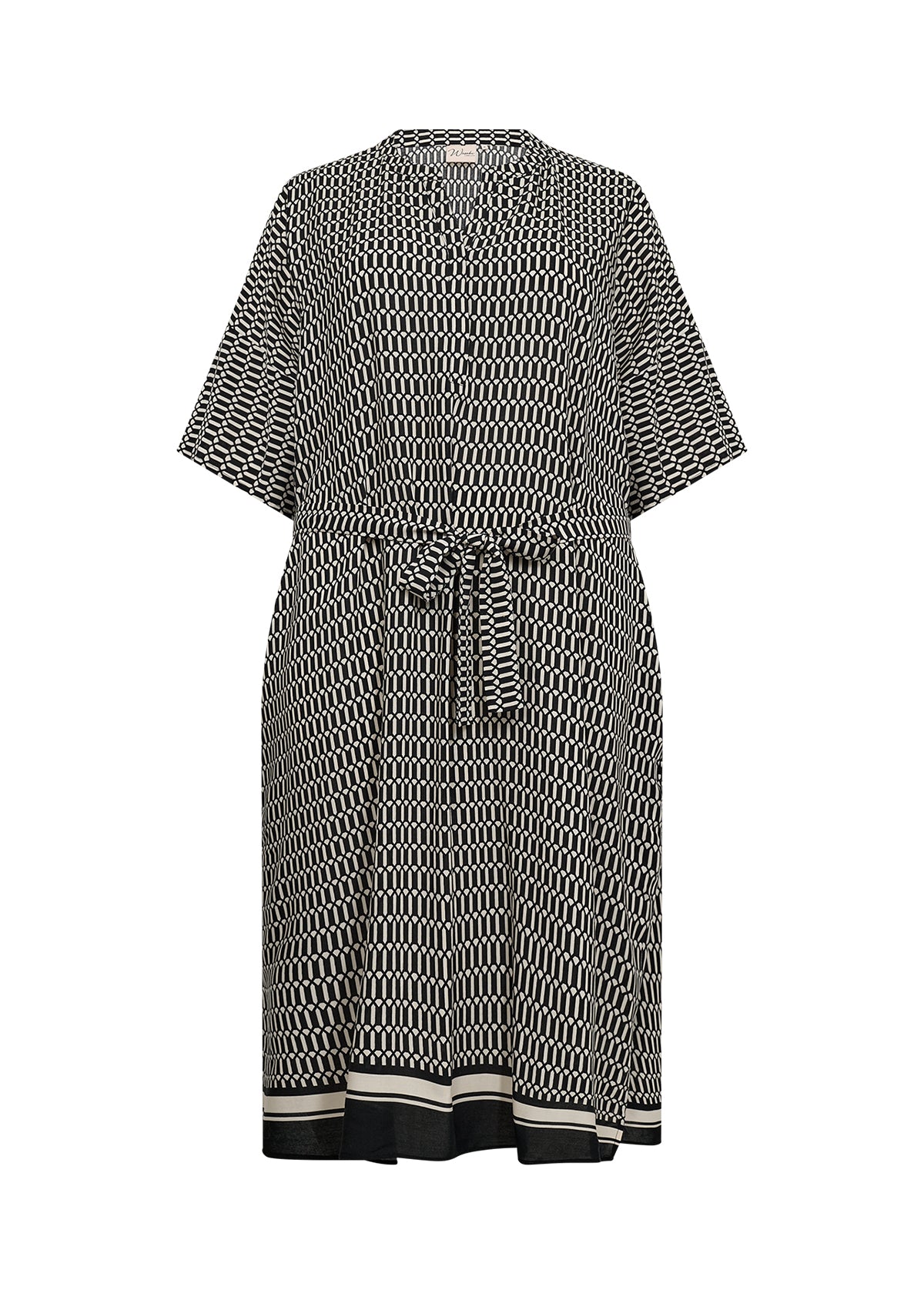 Klänningen har V-ringad hals med 3/4 dels långa ärmar, denna kan du både bära till vardags och fest. Det ingår ett bälte som du enkelt kan markera midjan med.