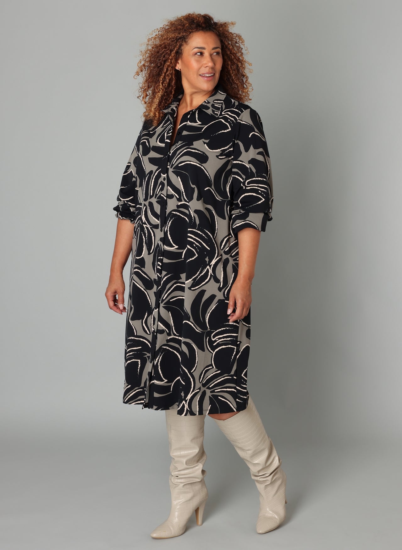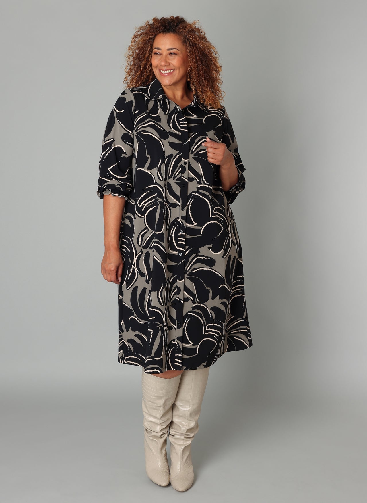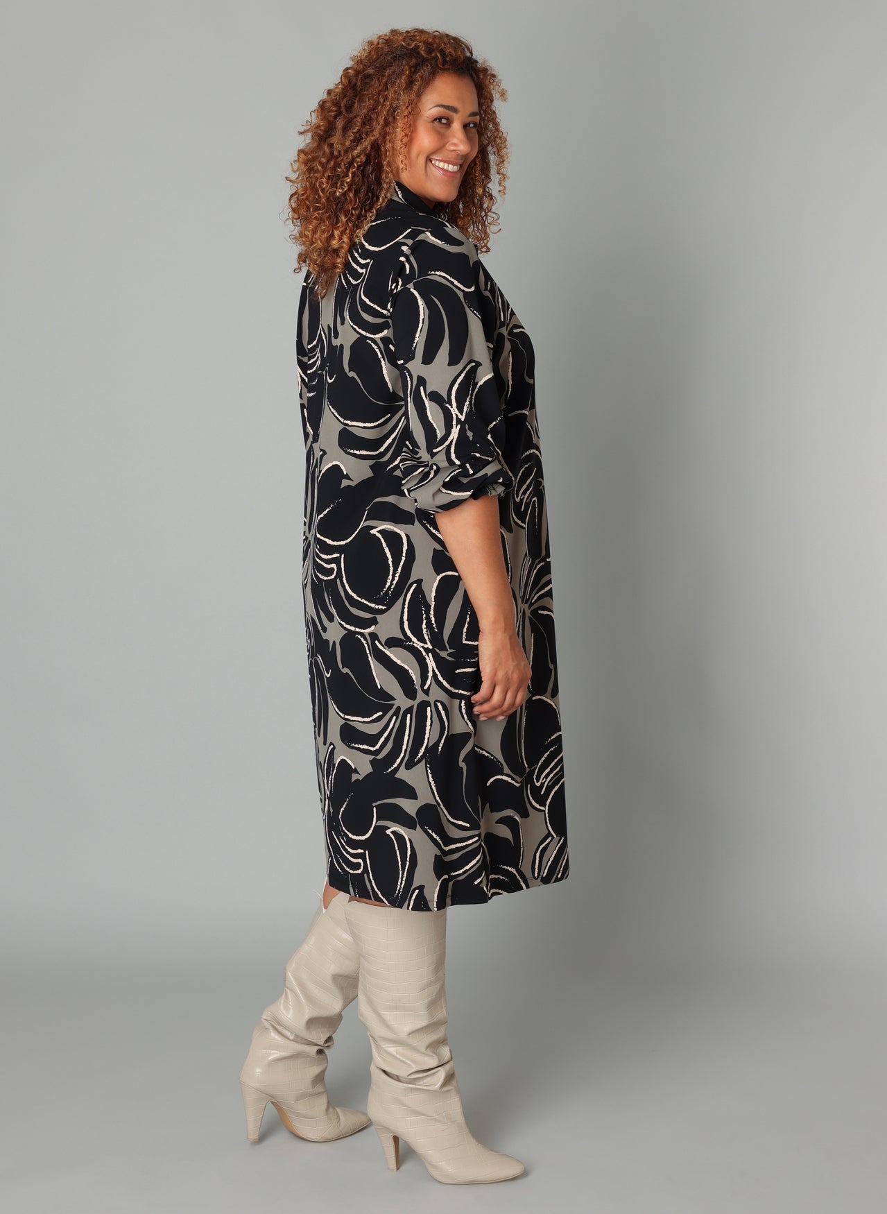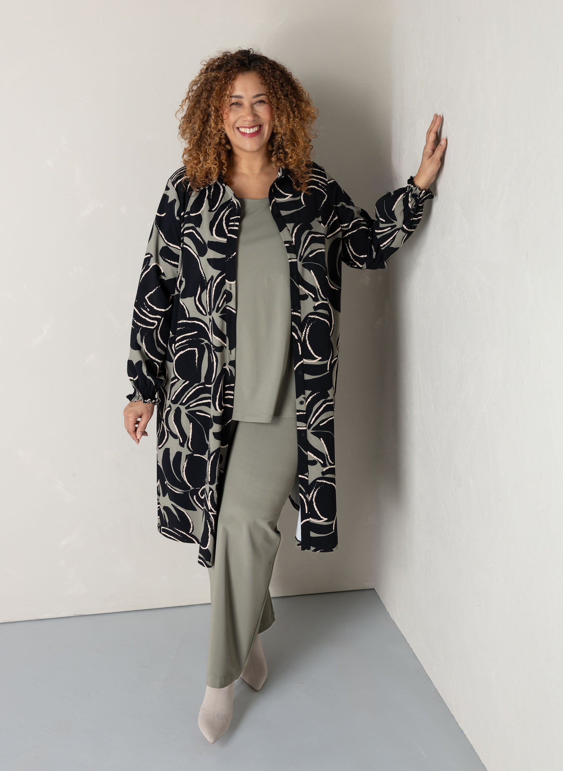 Snygg lång skjorta med klassisk skjortkrage och långa ärmar, den är genom knäppt hela vägen så du både kan bära den öppen och stängd.
