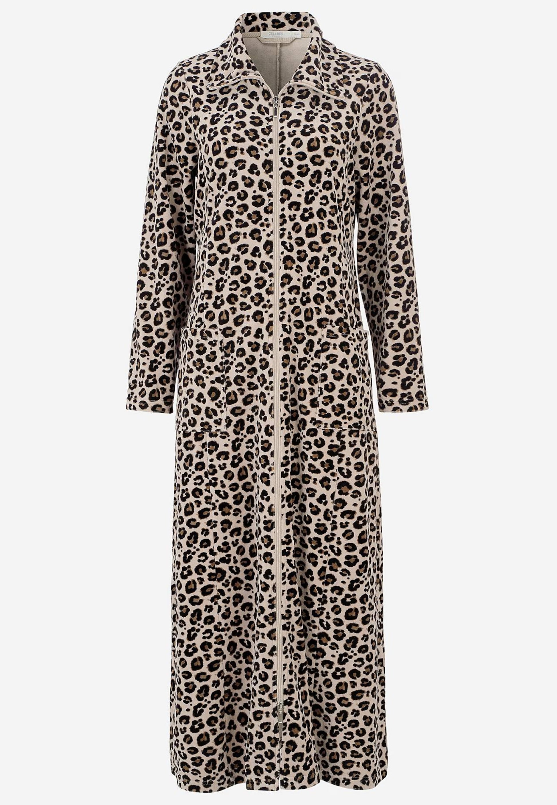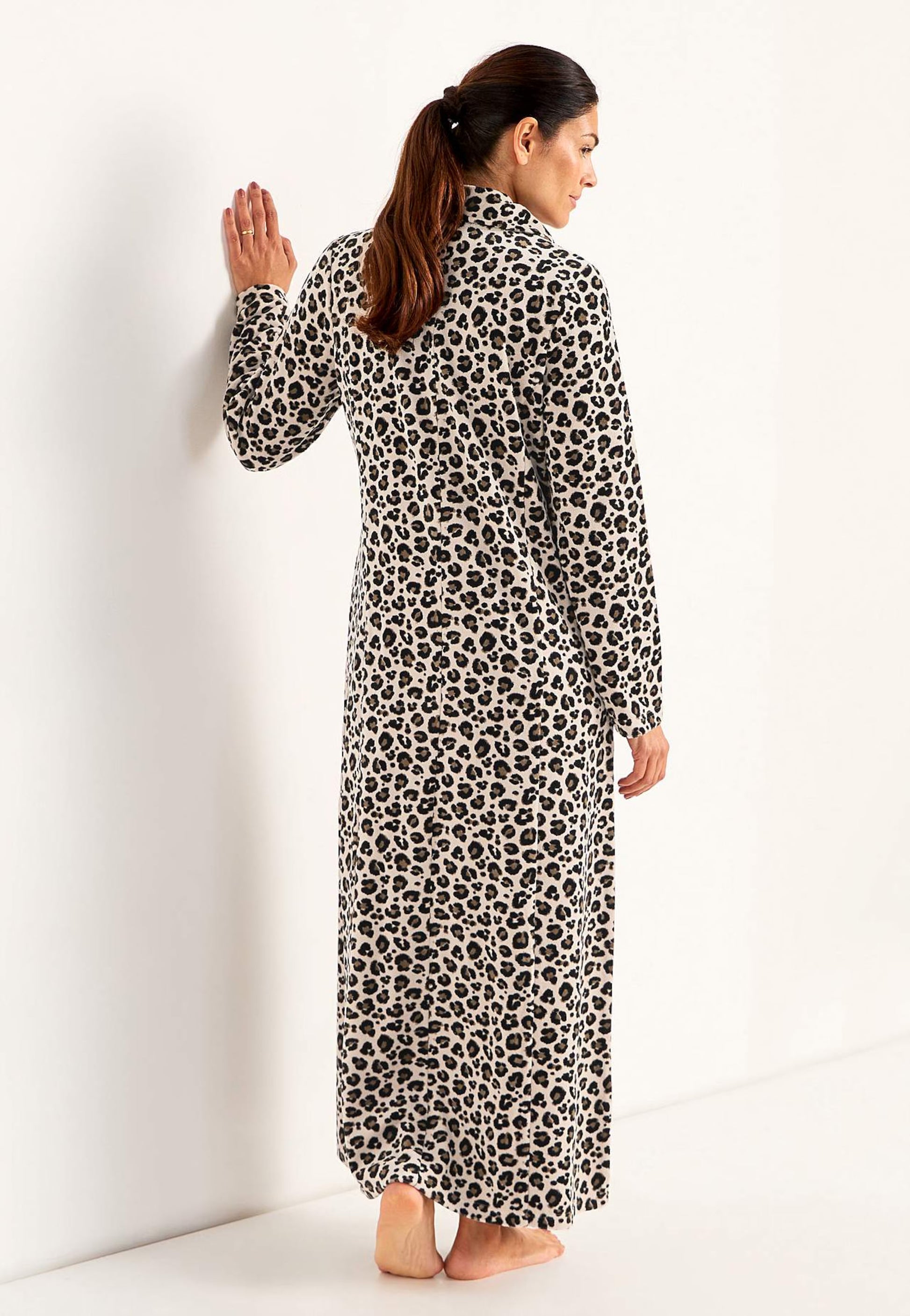 Mysig leopard mönstrad morgonrock med en långa ärmar och en liten krage, denna är mysig att krypa in i en fredagkväll.