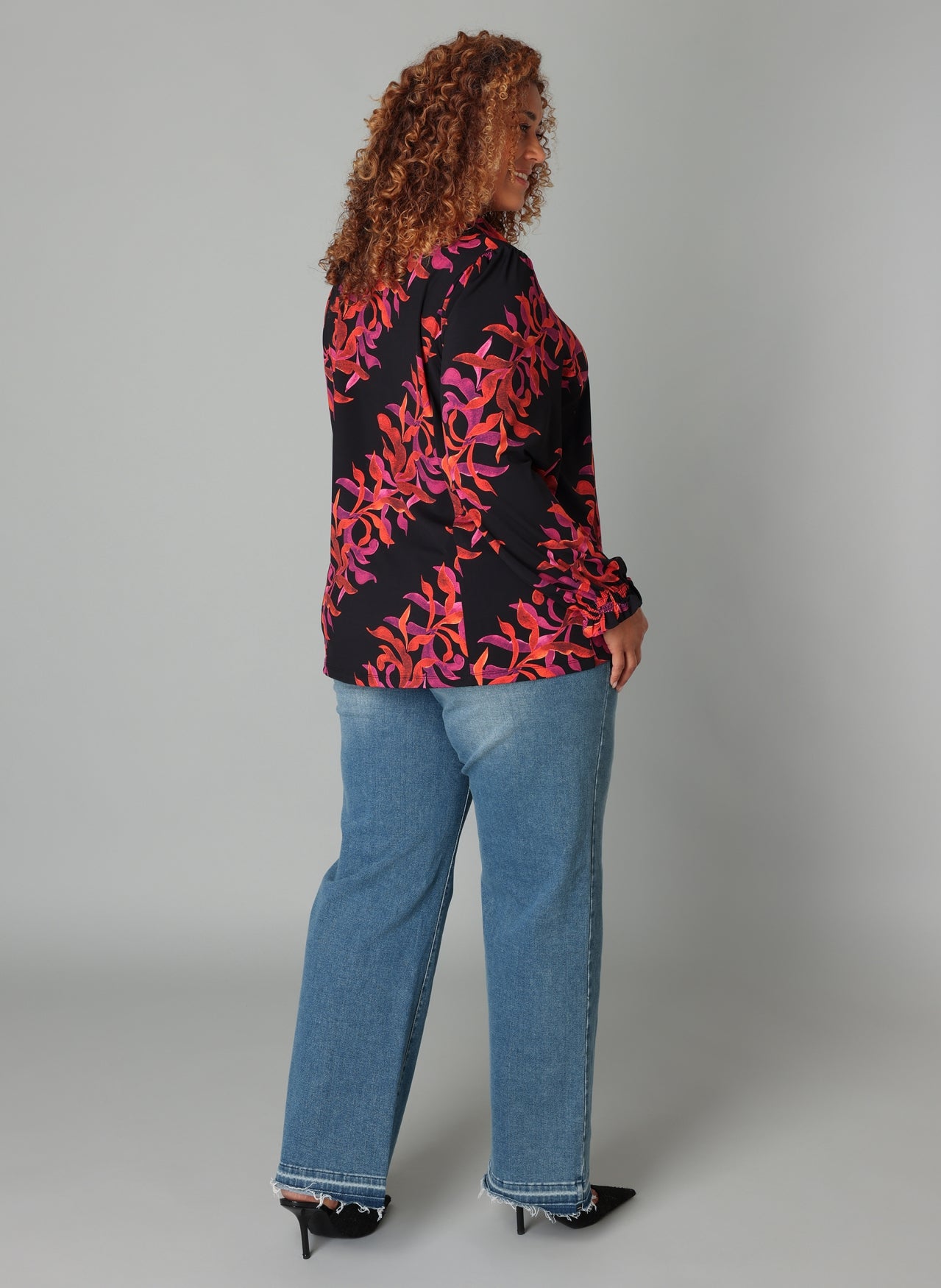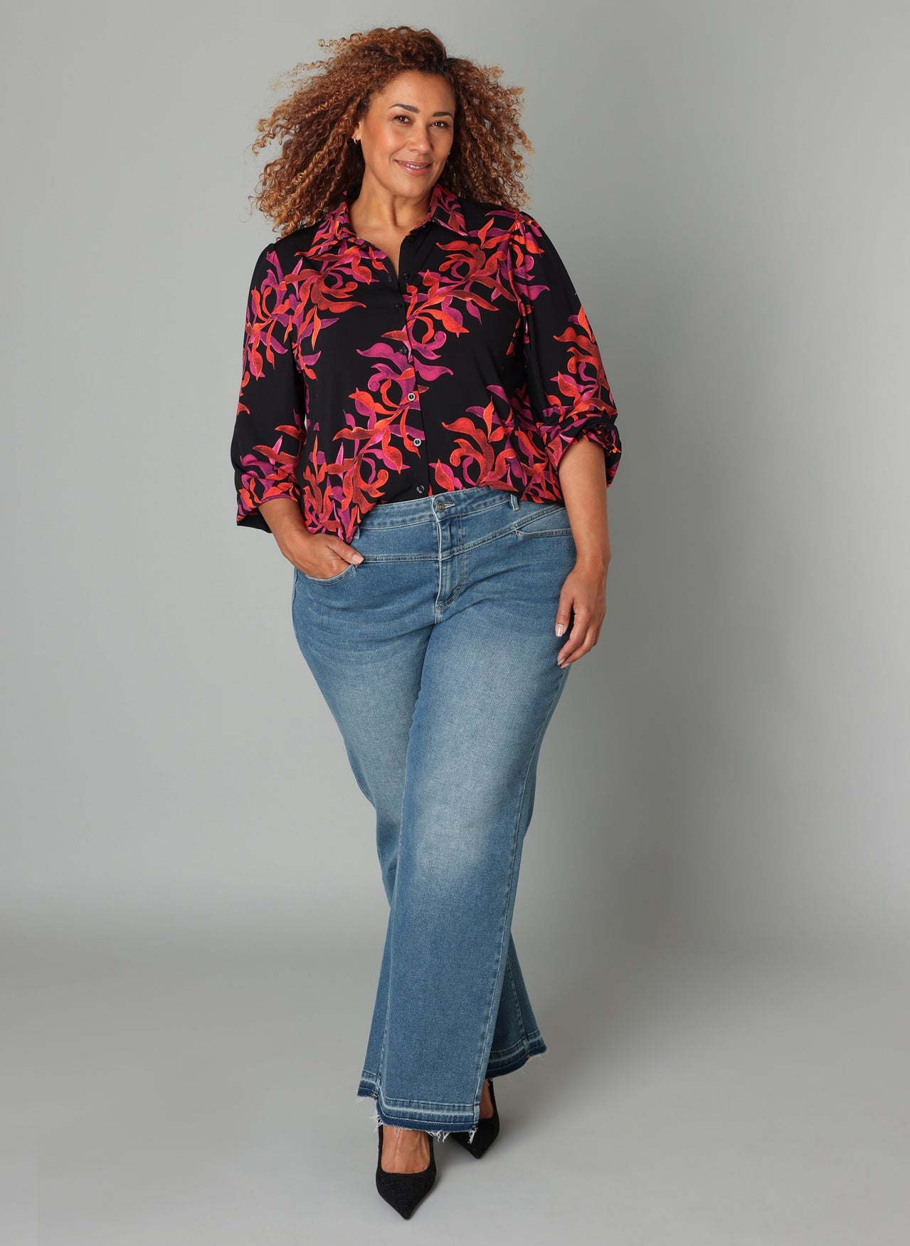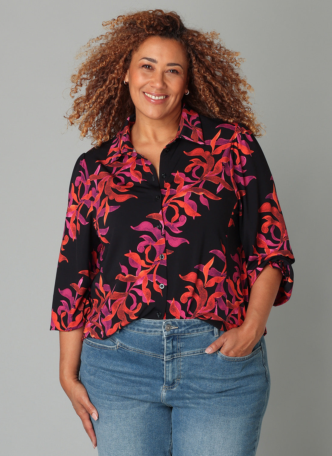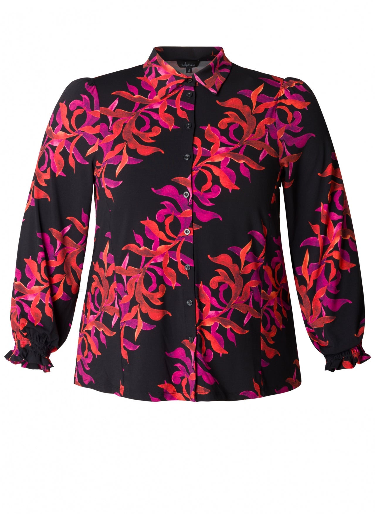 Snygg skjorta med svart botten med rosa och röda blommor, denna kan du både bära till en kjol eller byxa.