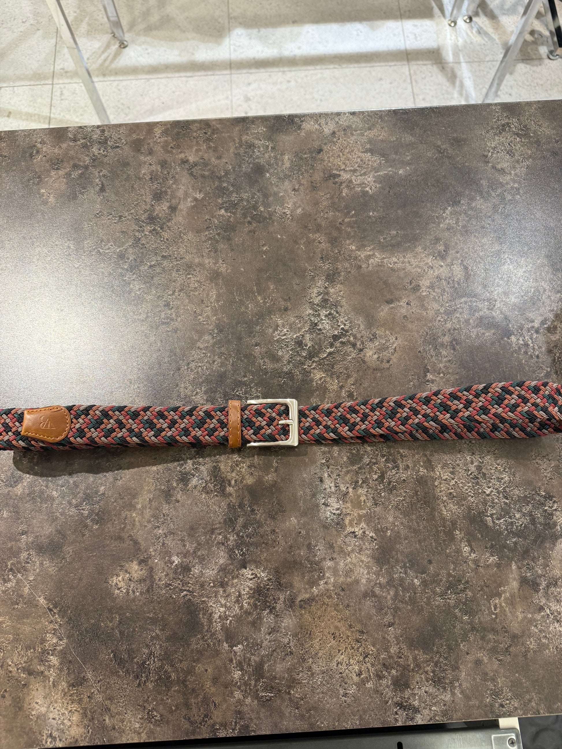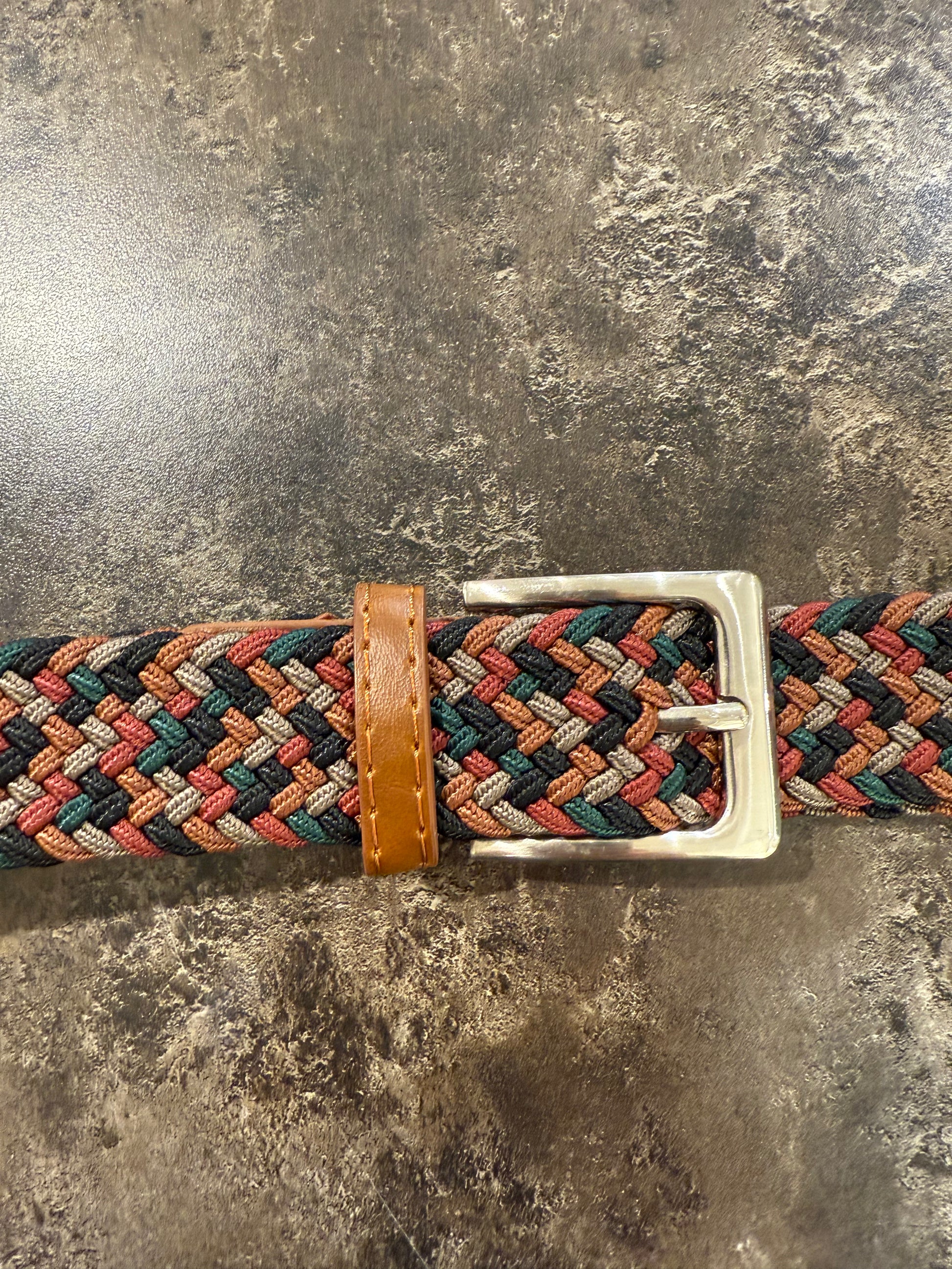 Ett praktiskt skärp i resår så du kan ställa in önskad längd själv, spännet är i stål och äkta läder runt om.