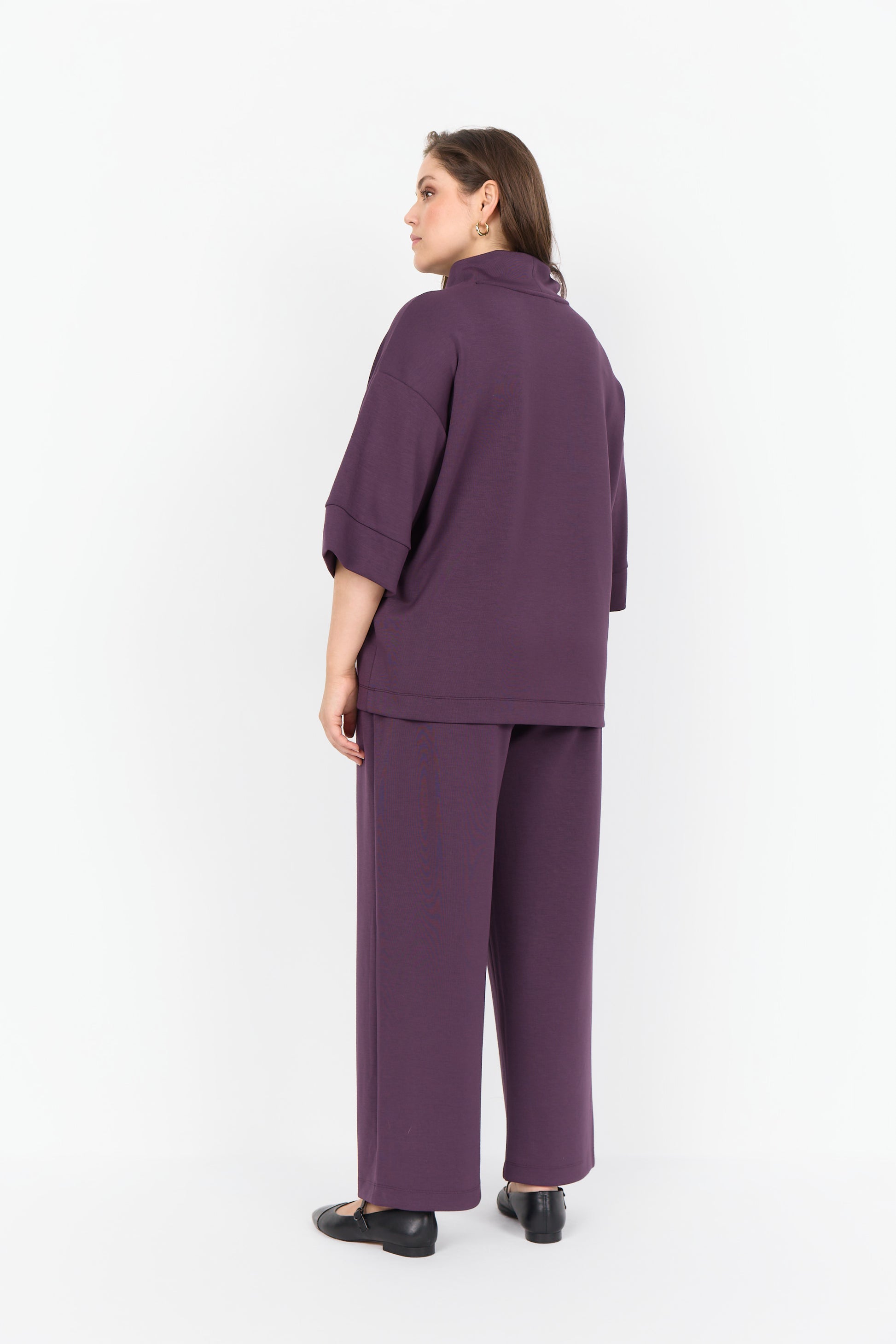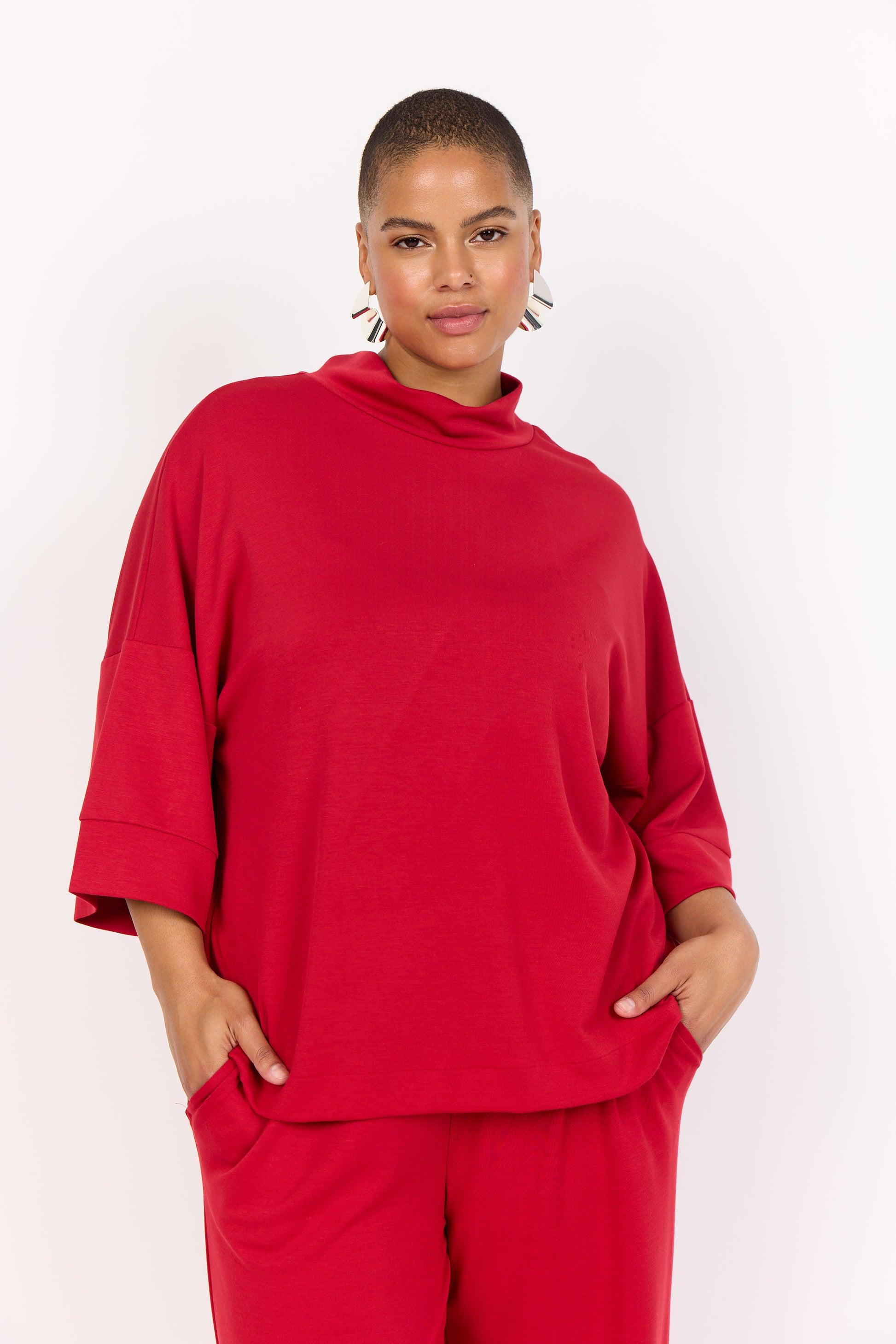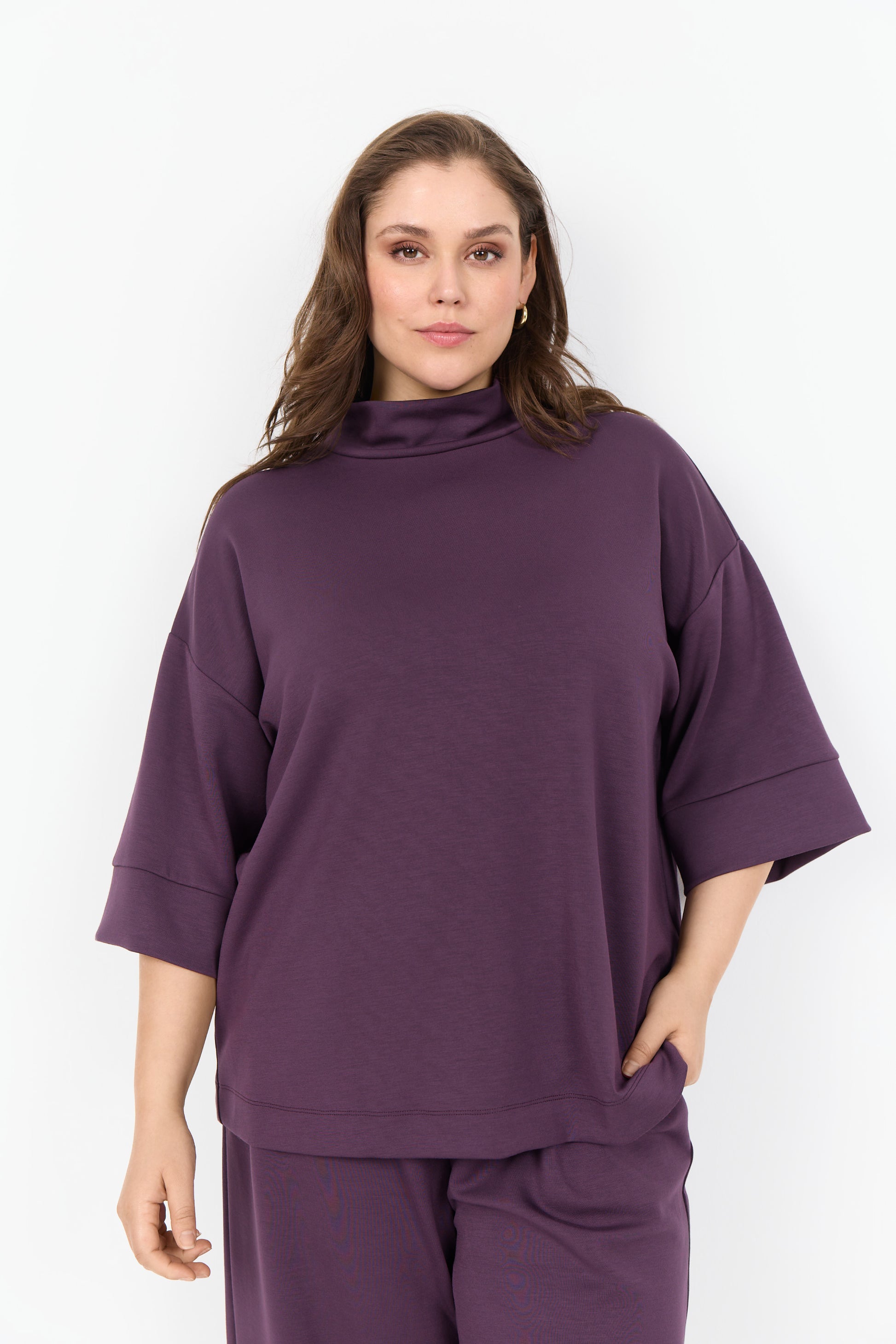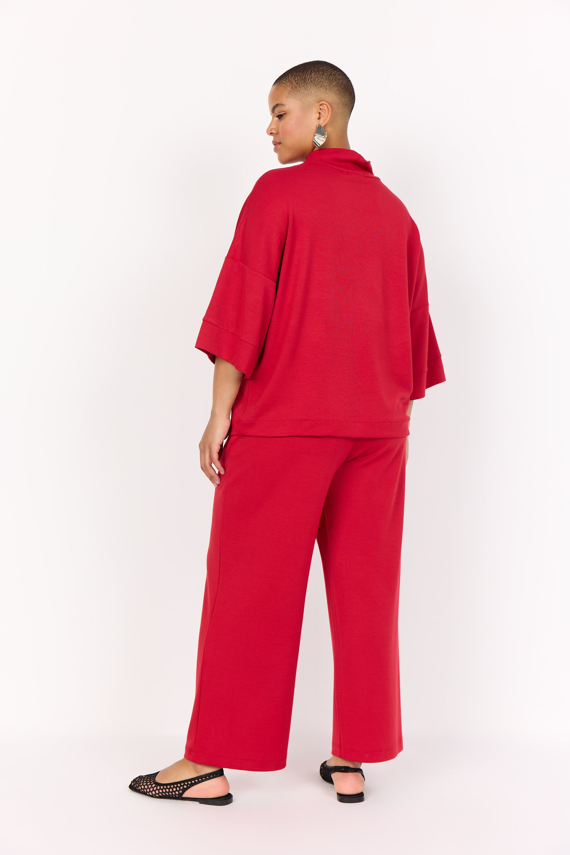 Tröjan har en snygg mock neck och vida 3/4-långa ärmar, vilket skapar en avslappnad silhuett. Kombinera den med de matchande byxorna för en snygg look.