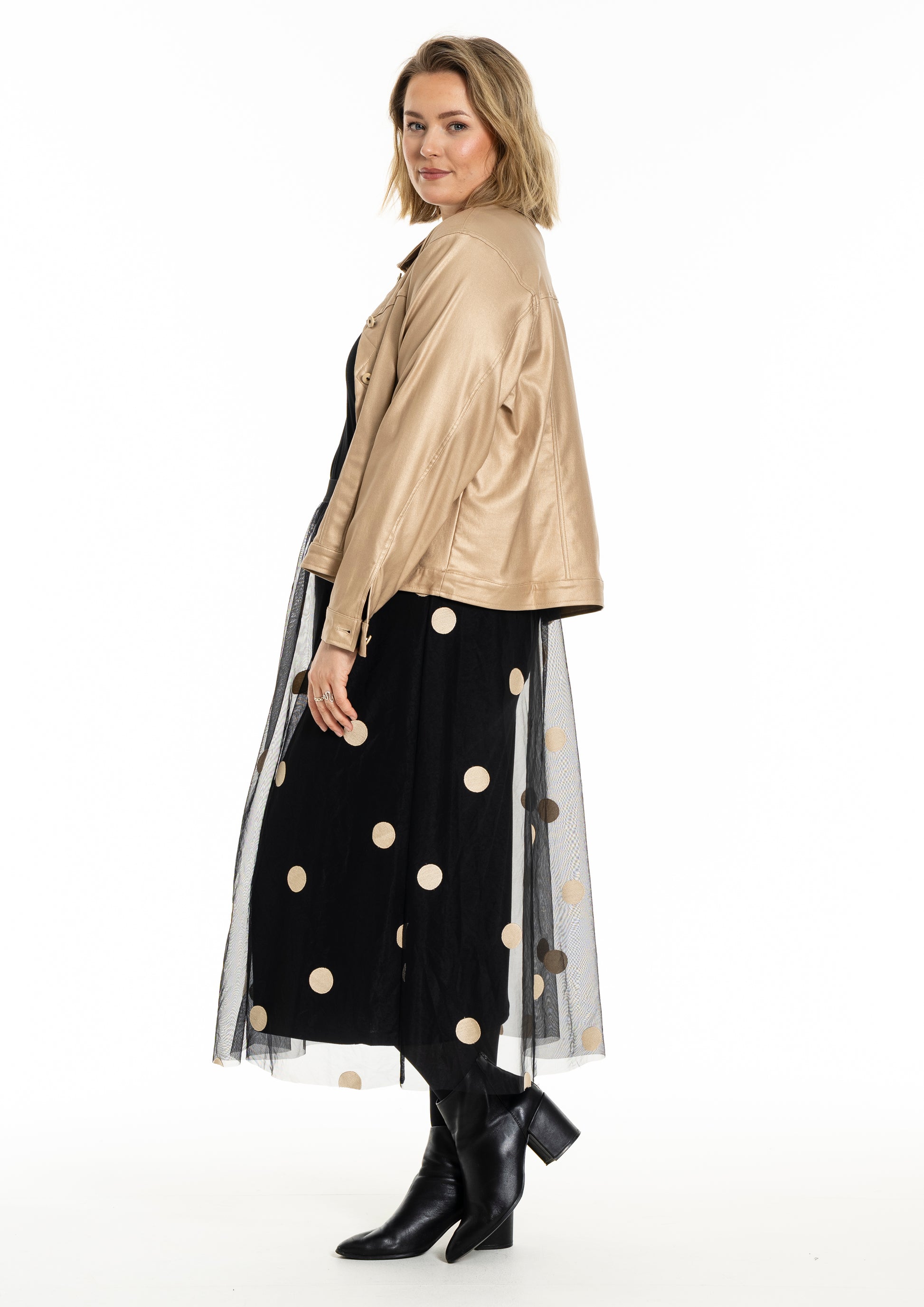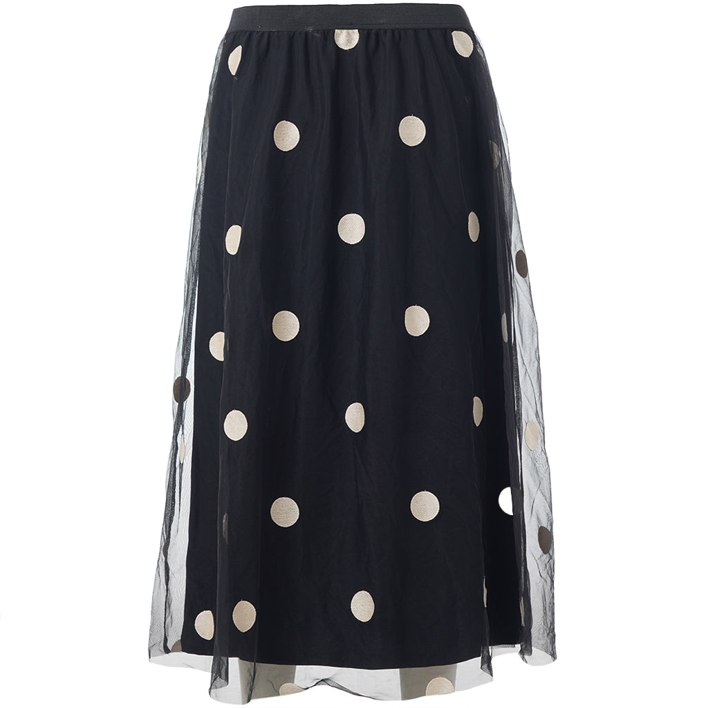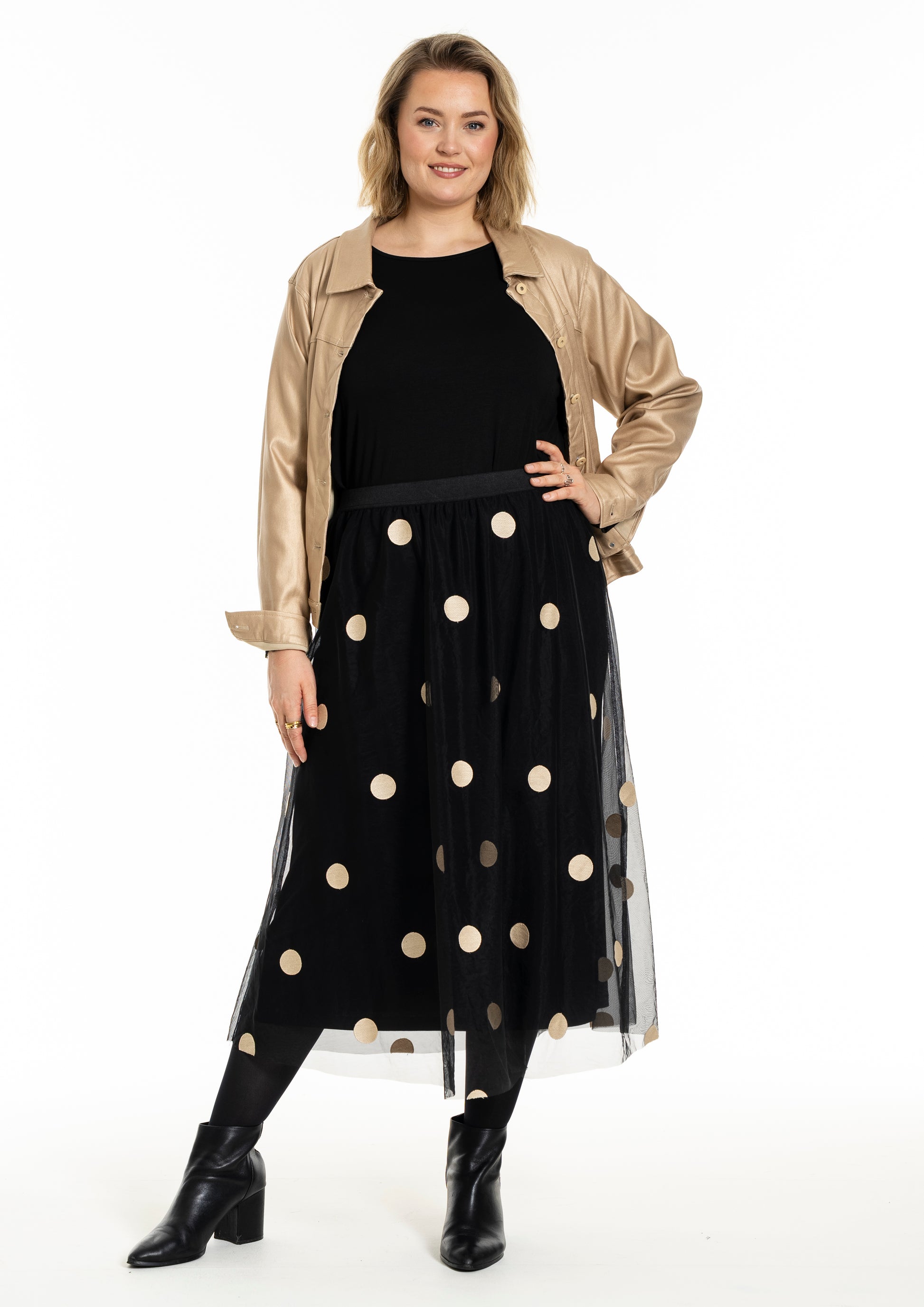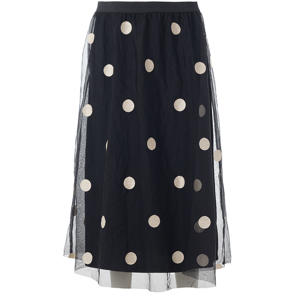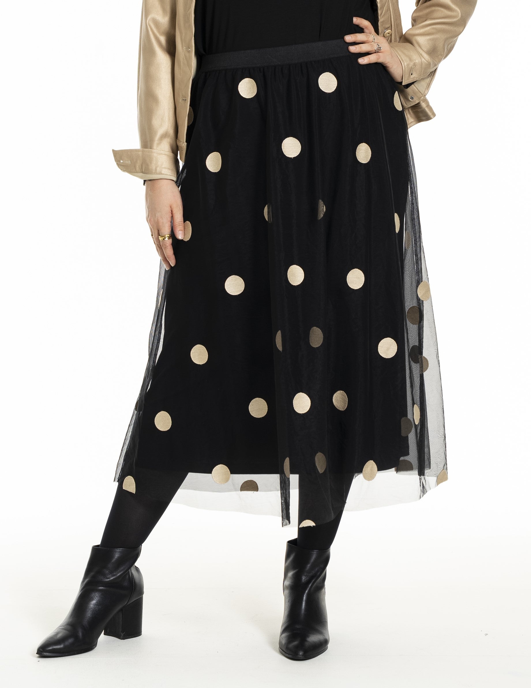 Denna snygga tyllkjol är det svart tyll och prickar på, du kan både bära den till en festlig blus eller en T-shirt. Passar både att bära snygga boots eller sneakers till.