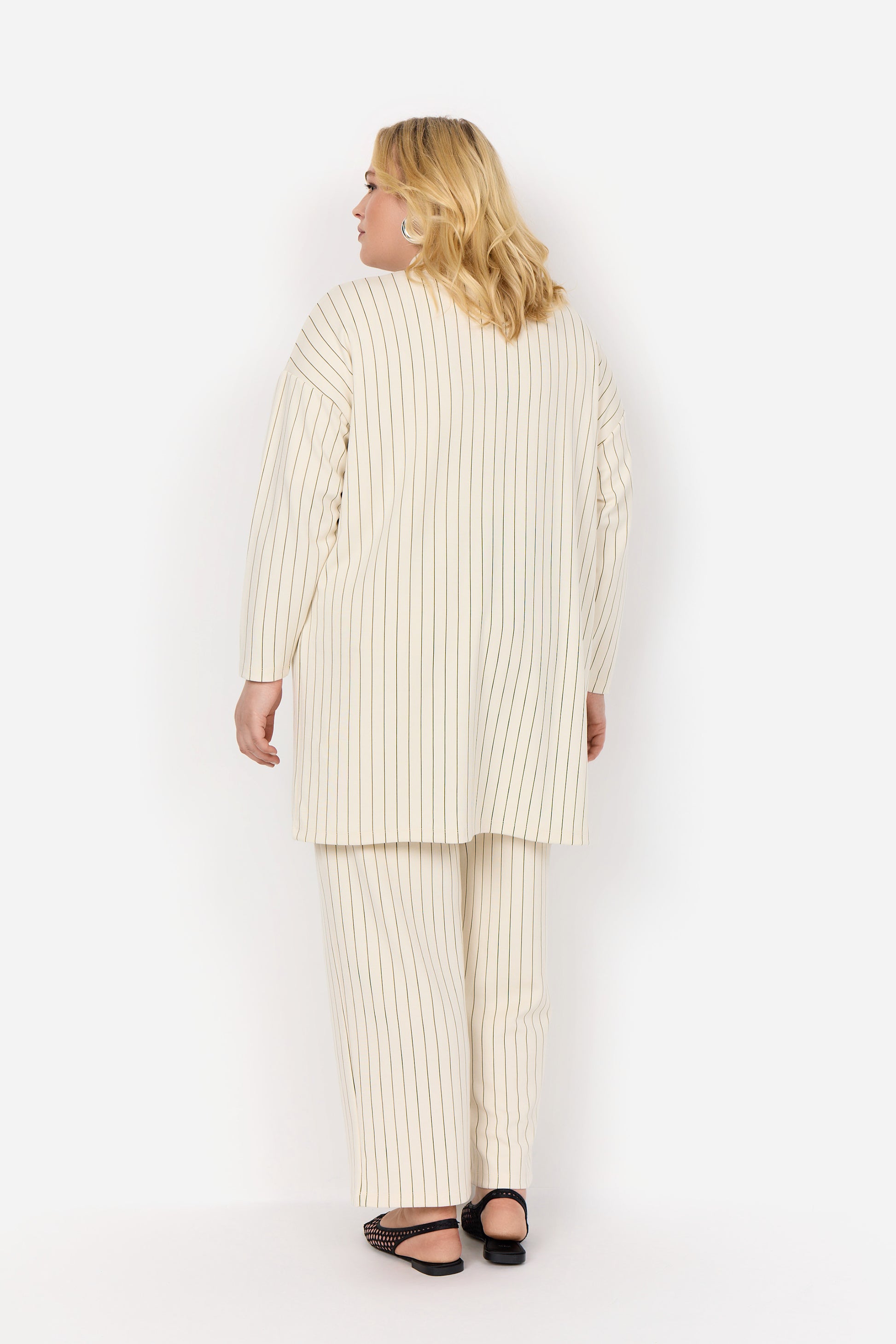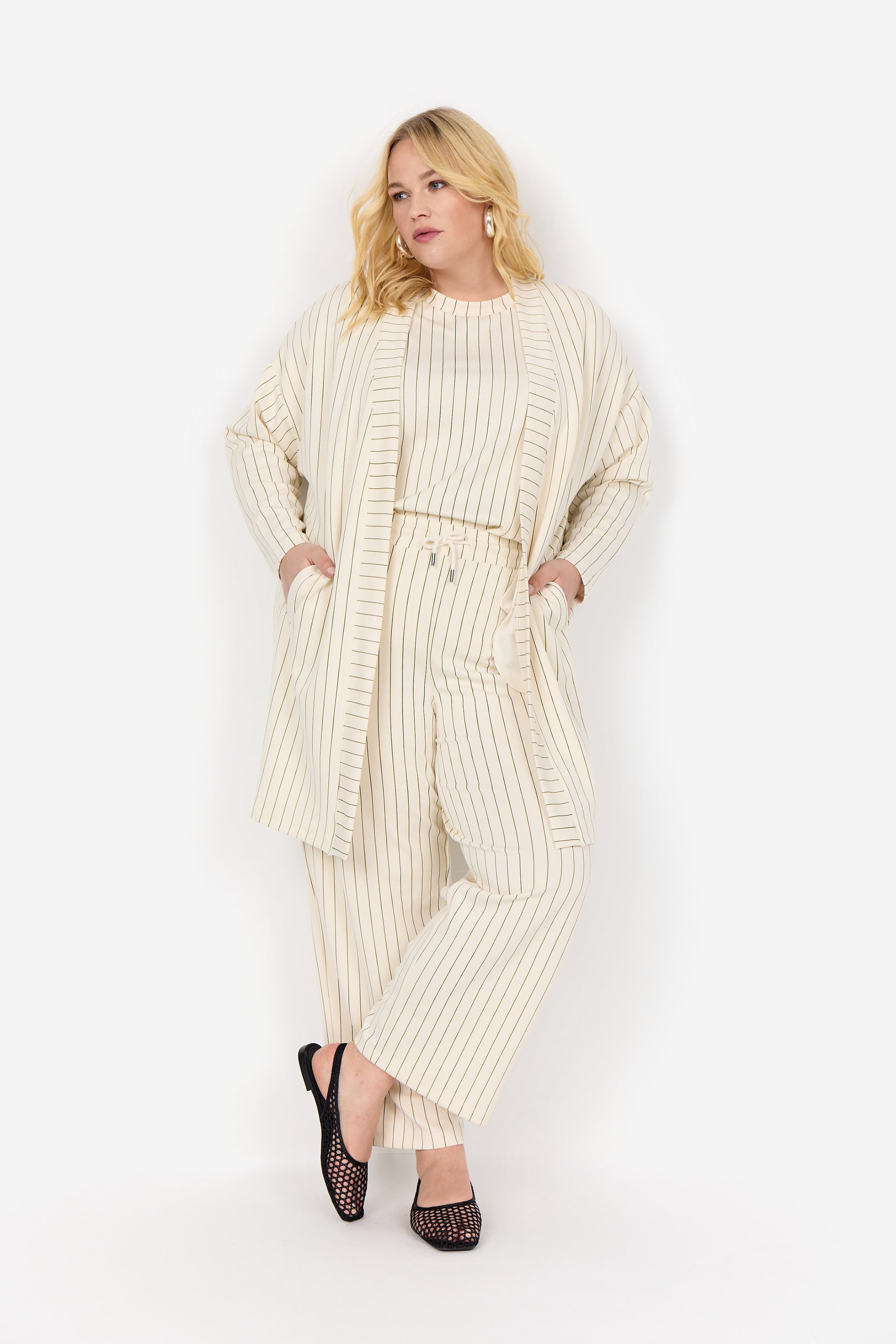 Skön kofta med beige botten och svarta ränder, denna kan du både bära till vardags eller finare tillfällen. Snygg att sätta till jeans eller bära den matchade byxan till.