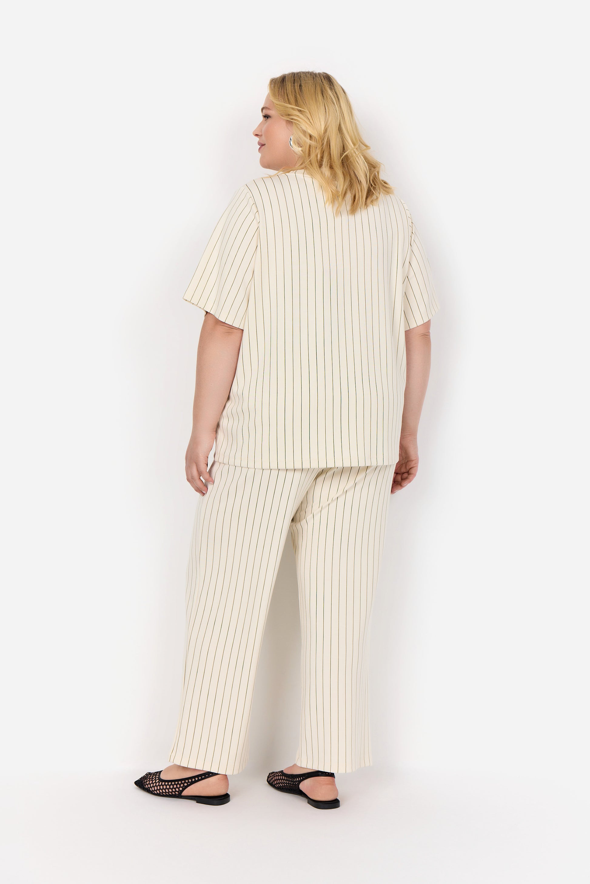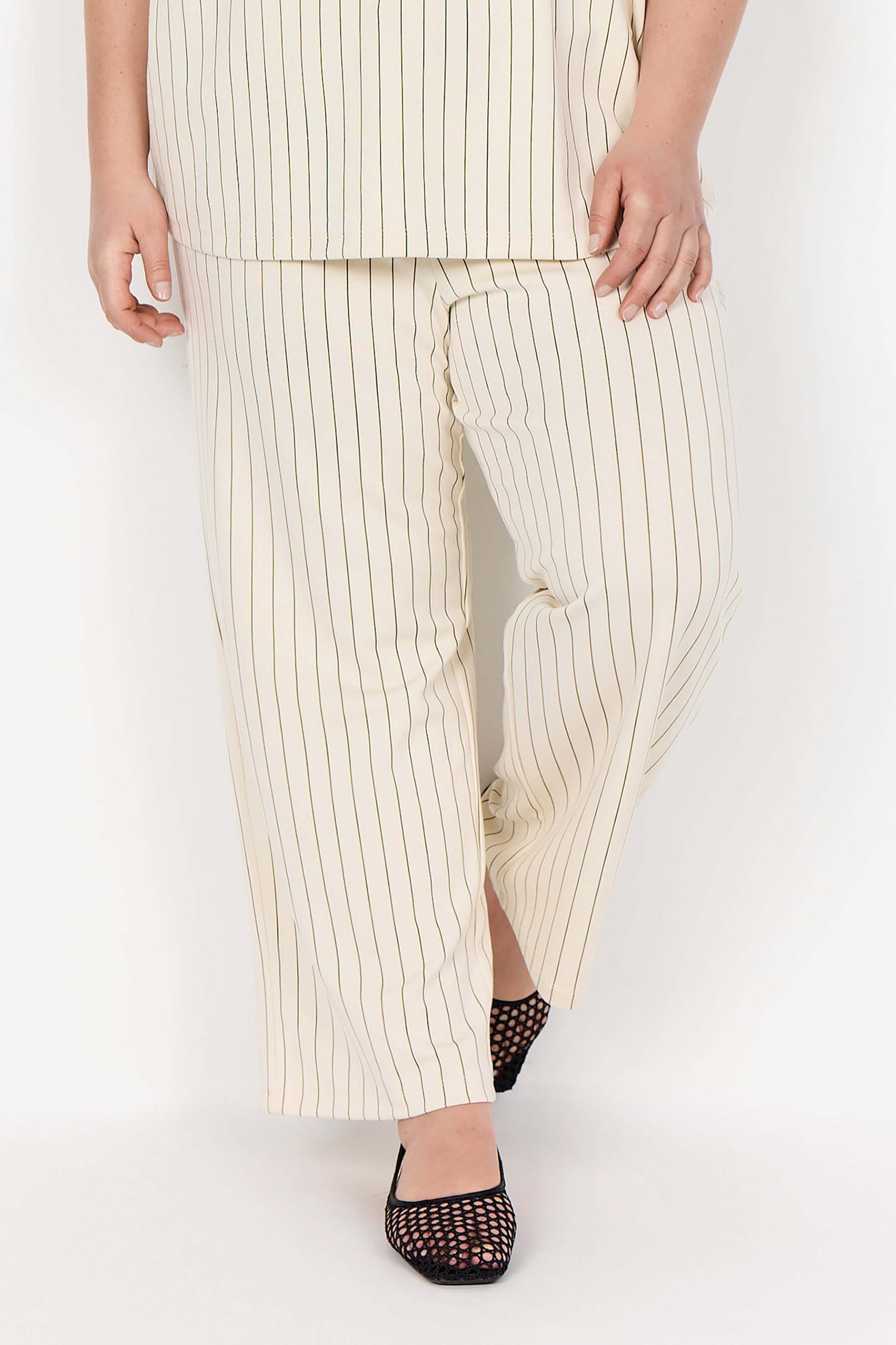 Skönaste byxan från Wasabi med beige botten och svarta ränder, det är resår i midjan med fickor på sidorna.