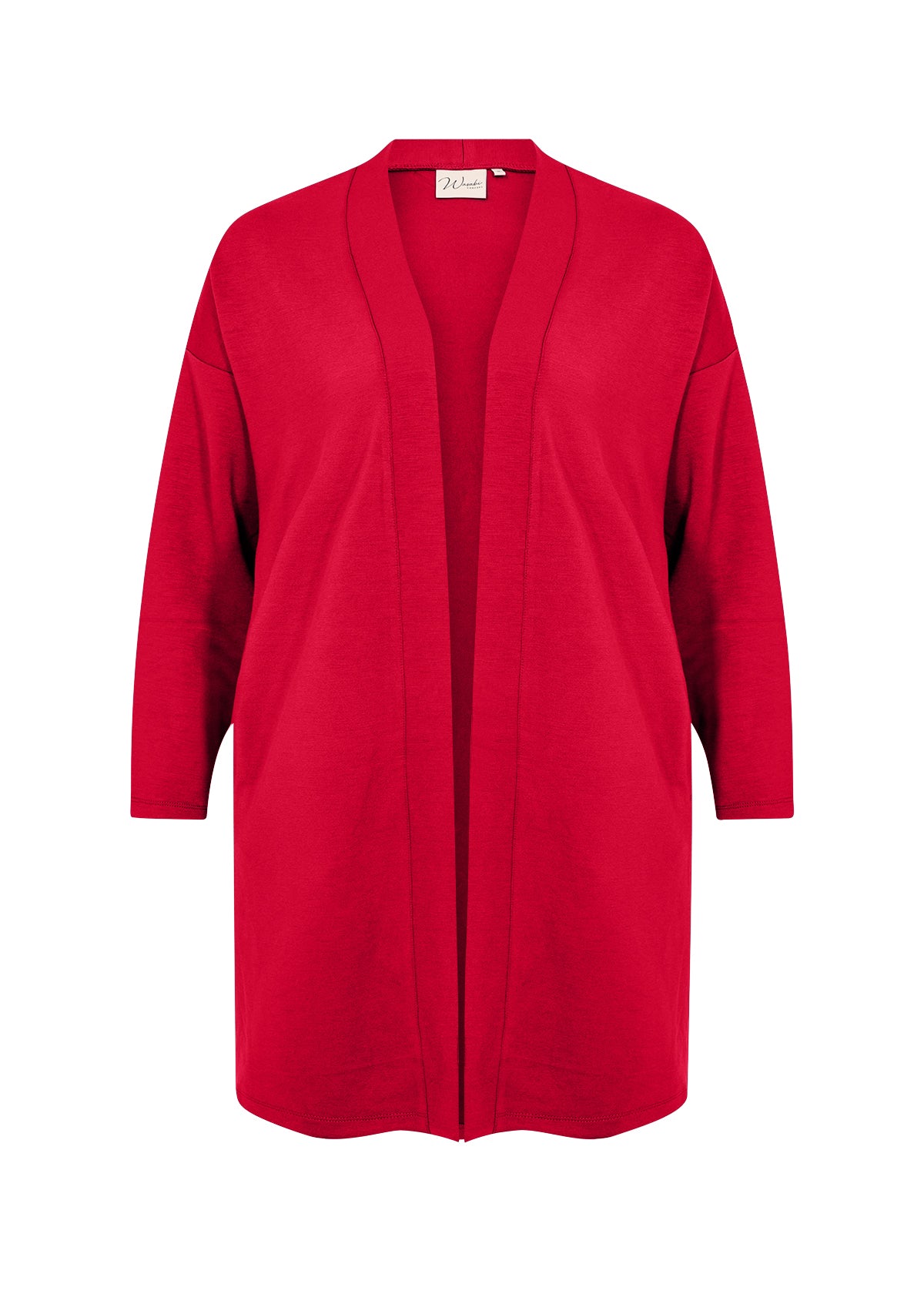 Denna kofta har en öppen design framtill med en sjalkrage.