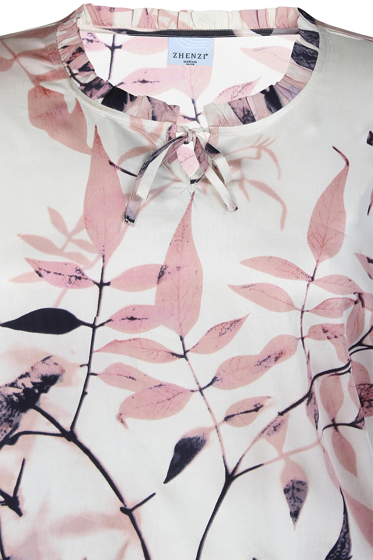 Elegant och mjuk med ett romantiskt bladmotiv – den här blusen ger en feminin och luftig känsla.