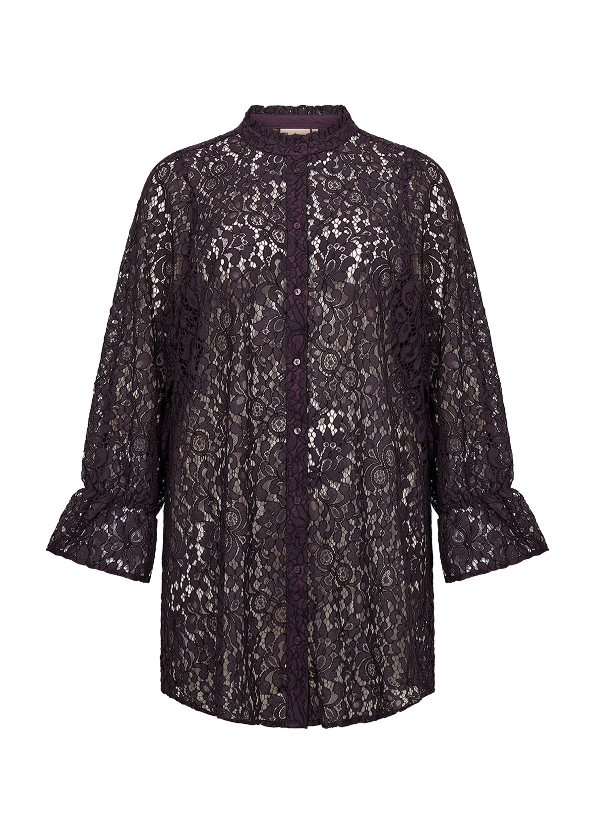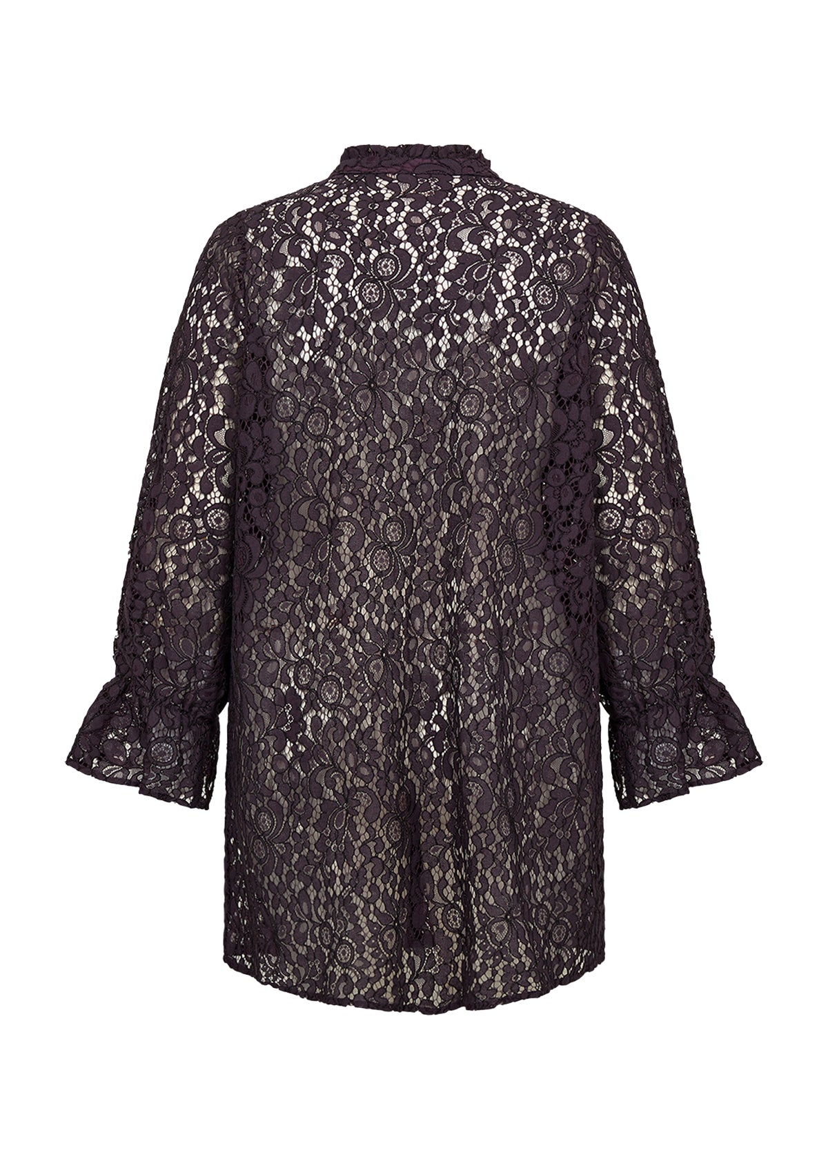 Snygg tunika i lila spets med långa ärmar, denna kan du både bära öppen och stängd.