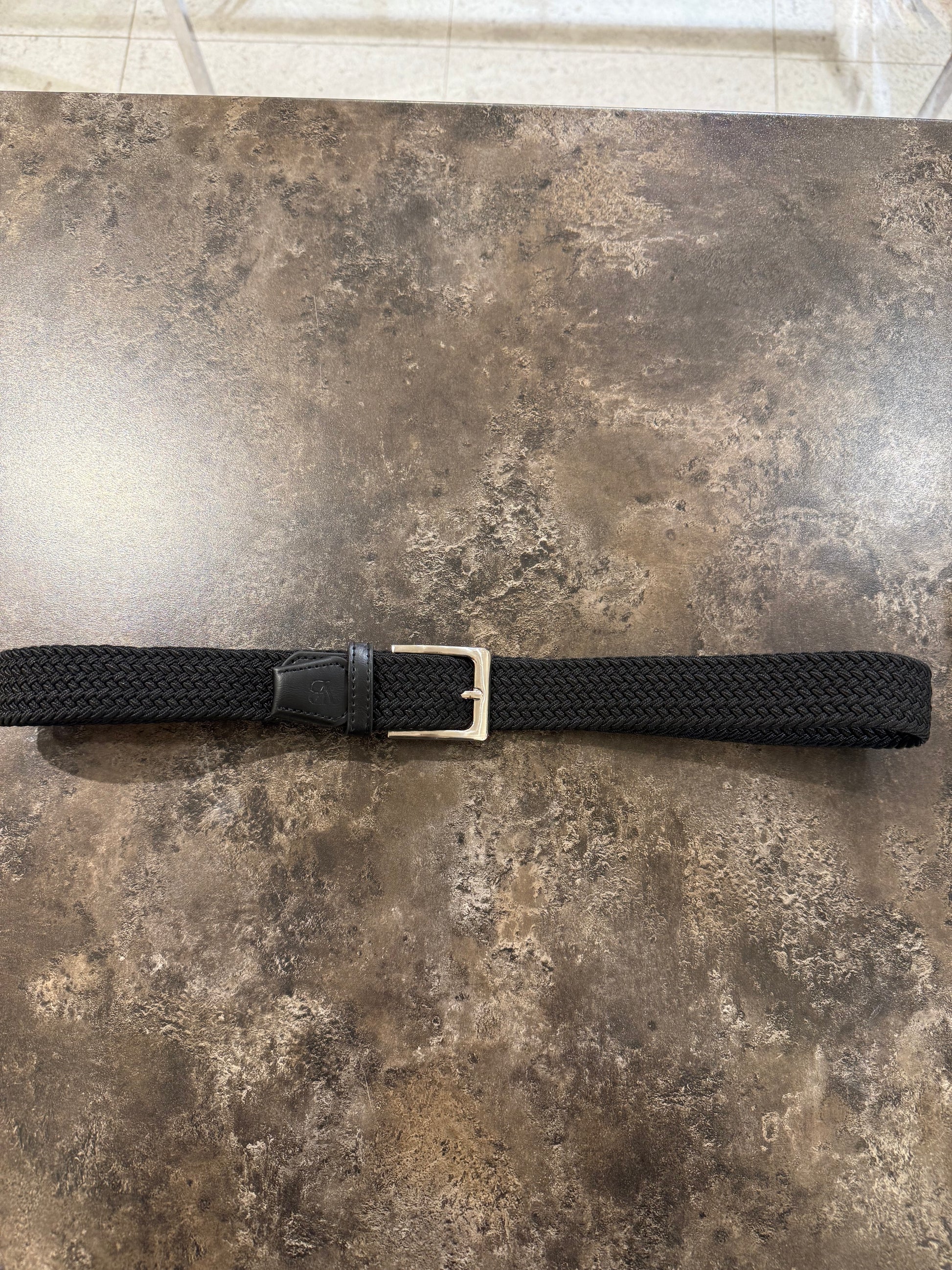 Ett praktiskt skärp i resår så du kan ställa in önskad längd själv, spännet är i stål och äkta läder runt om.
