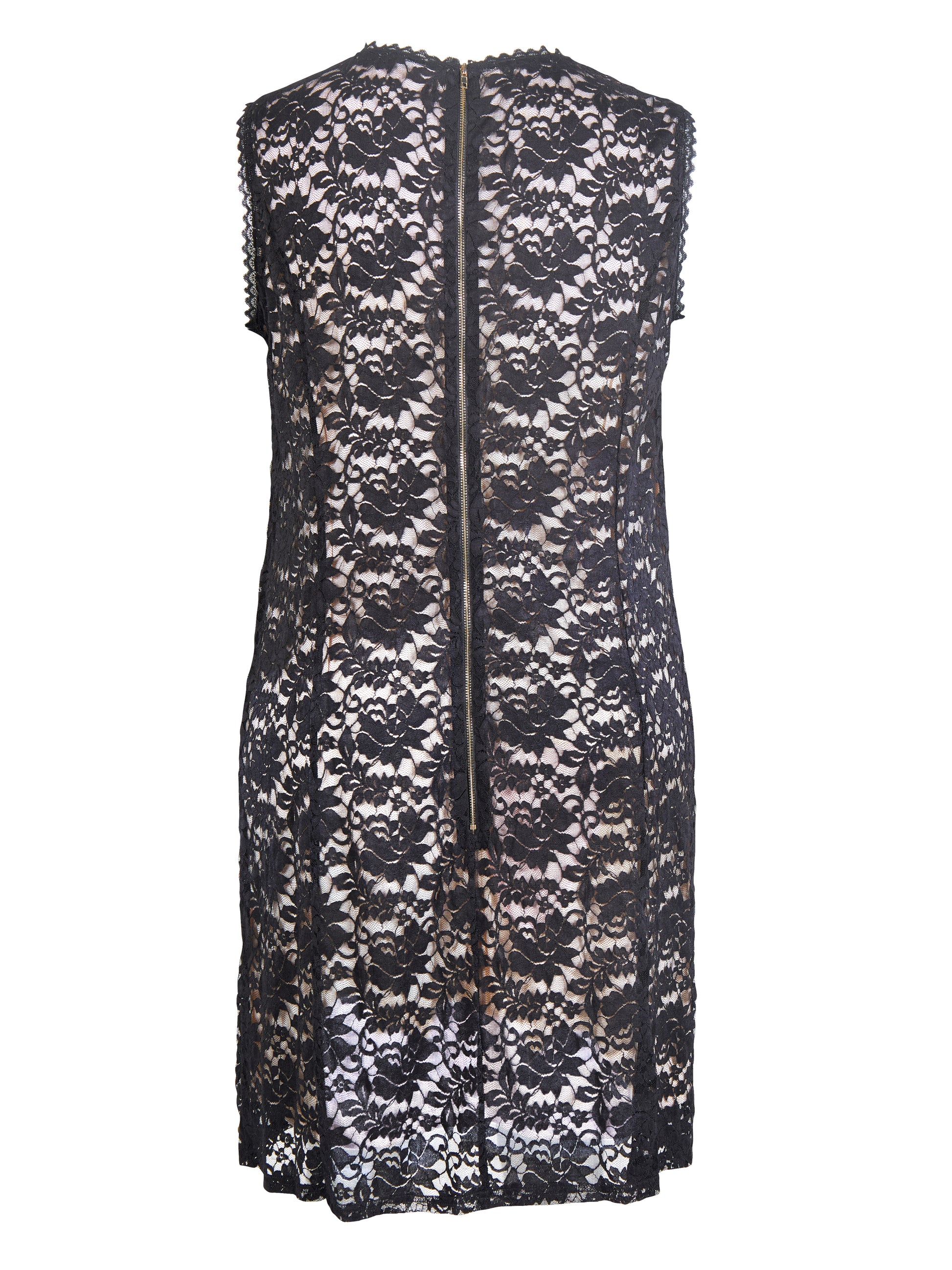 Snygg klänning med spets, det är ett beige innerfoder. Denna klänning är ärmlös så passar perfekt att bära under en kavaj.