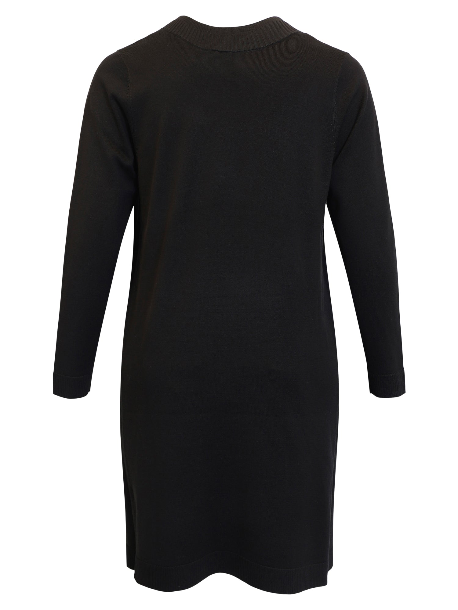 Mysig stickad klänning med v-ringad hals, denna är perfekt att bära i höst med leggings eller strumpbyxor.