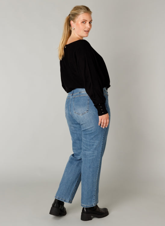 En snygg svart tröja med båt ringad hals och långa ärmar, det är en lätt pingvin formad ärm med silver knappar längst ner på ärmen som ger en snygg touch.