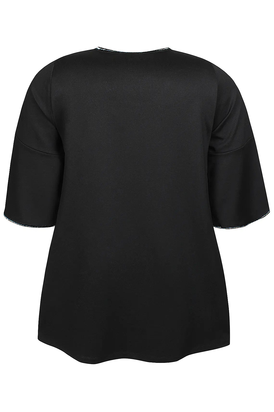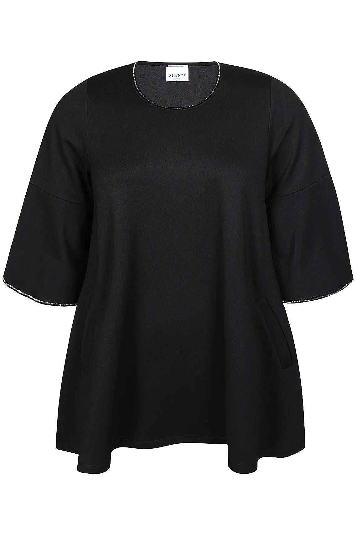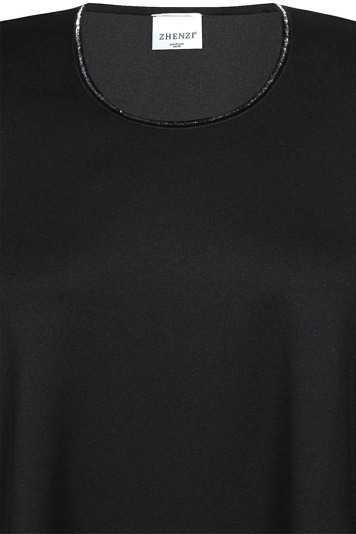 Elegant a-formad tunika med 3/4 dels långa ärmar och rundad hals, runt halsringningen så är det små diamanter som ger en extra touch.