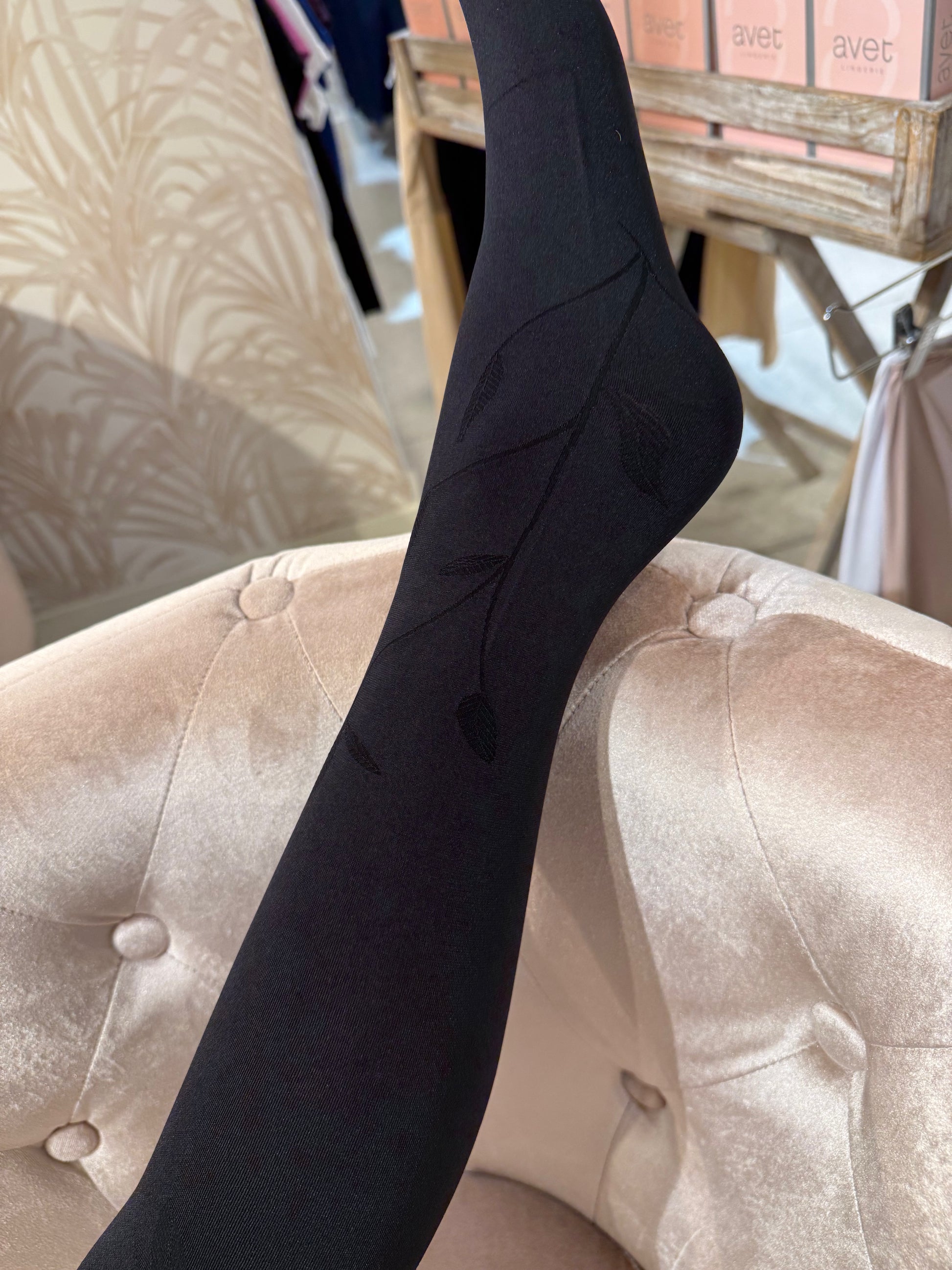 Svarta strumpbyxor med mönster 96385