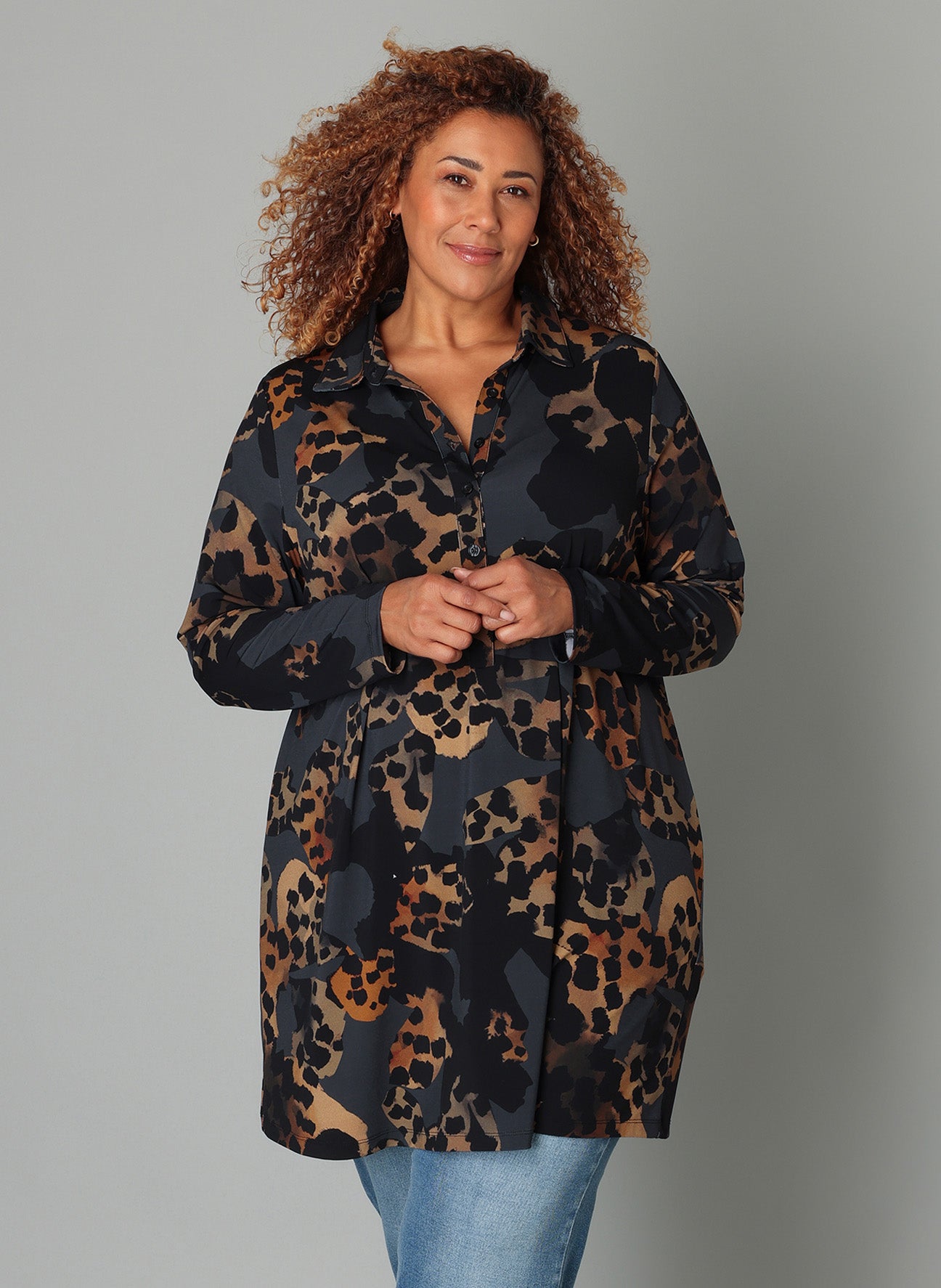 Snygg tunika med en klassisk skjortkrage och långa ärmar, denna kan du både bära till leggings eller byxor.