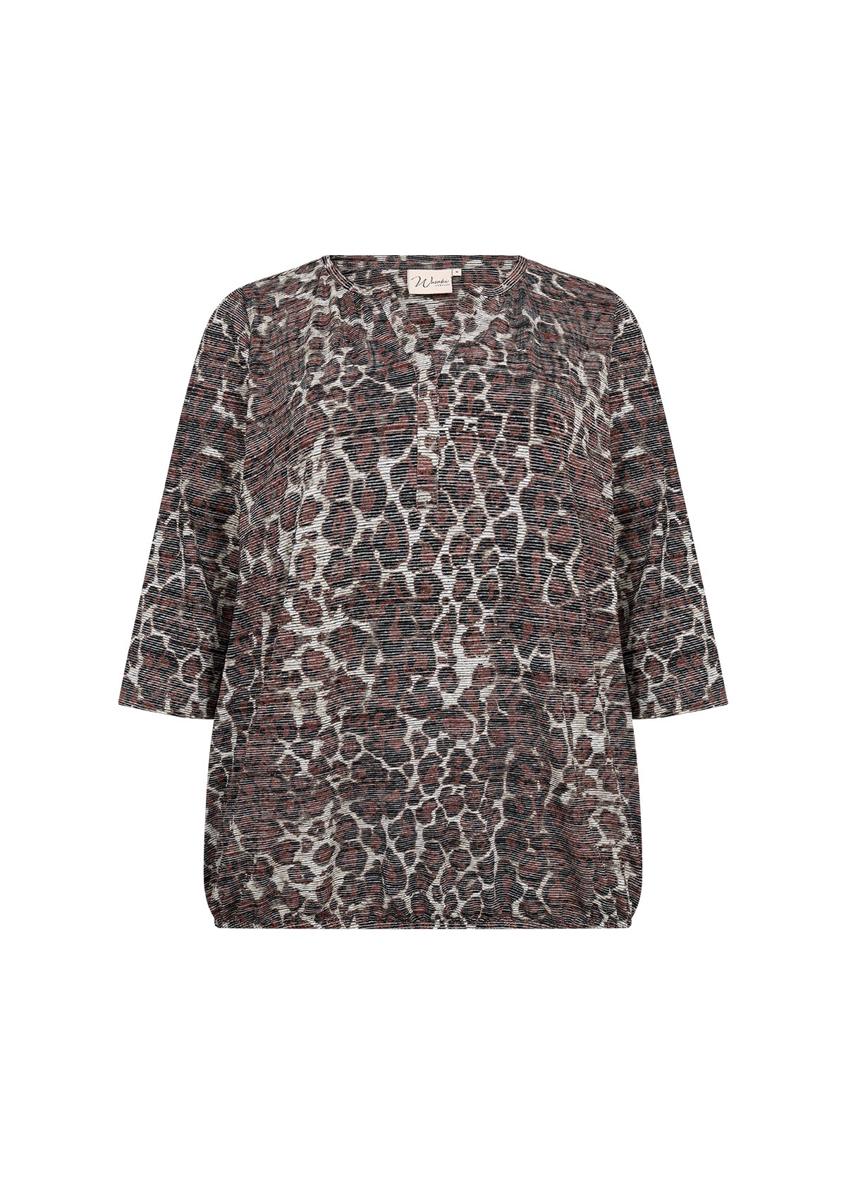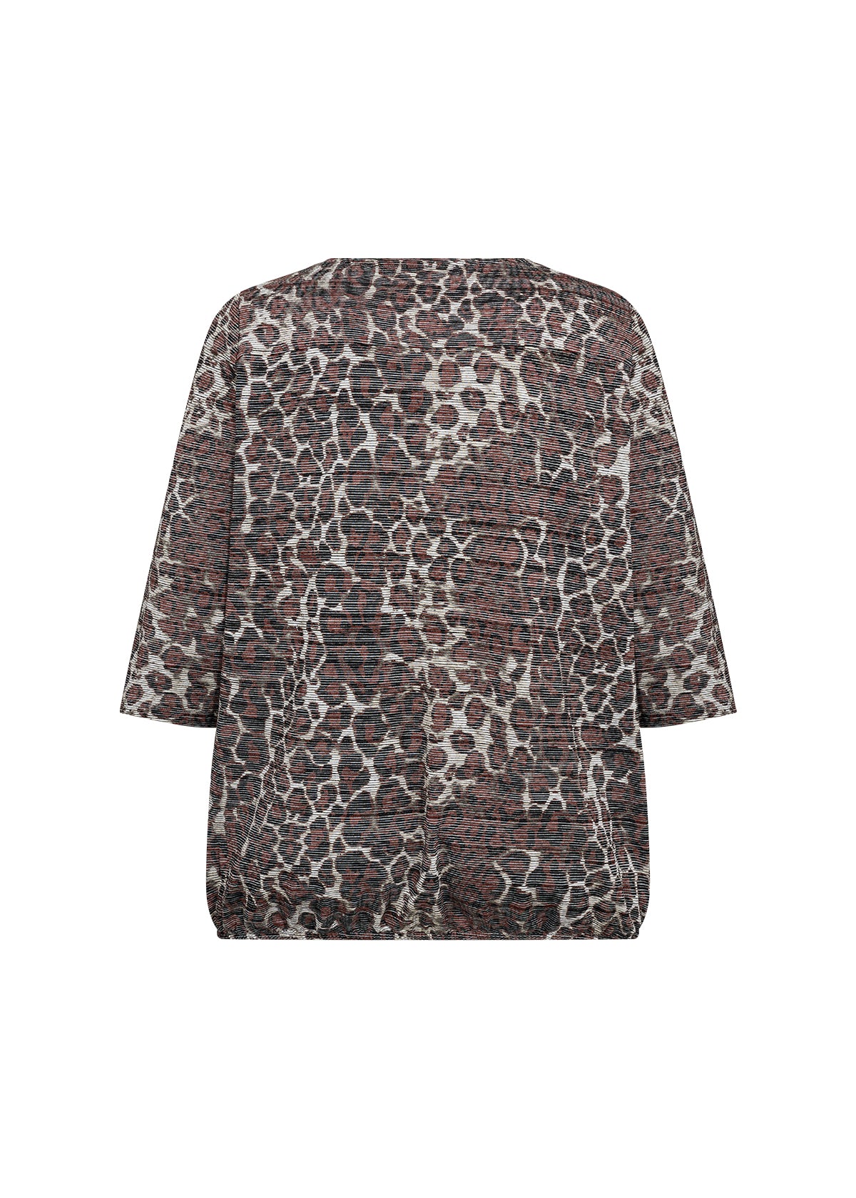 Den har en diskret v-ringning, trekvartsärmar och ett leopard mönster