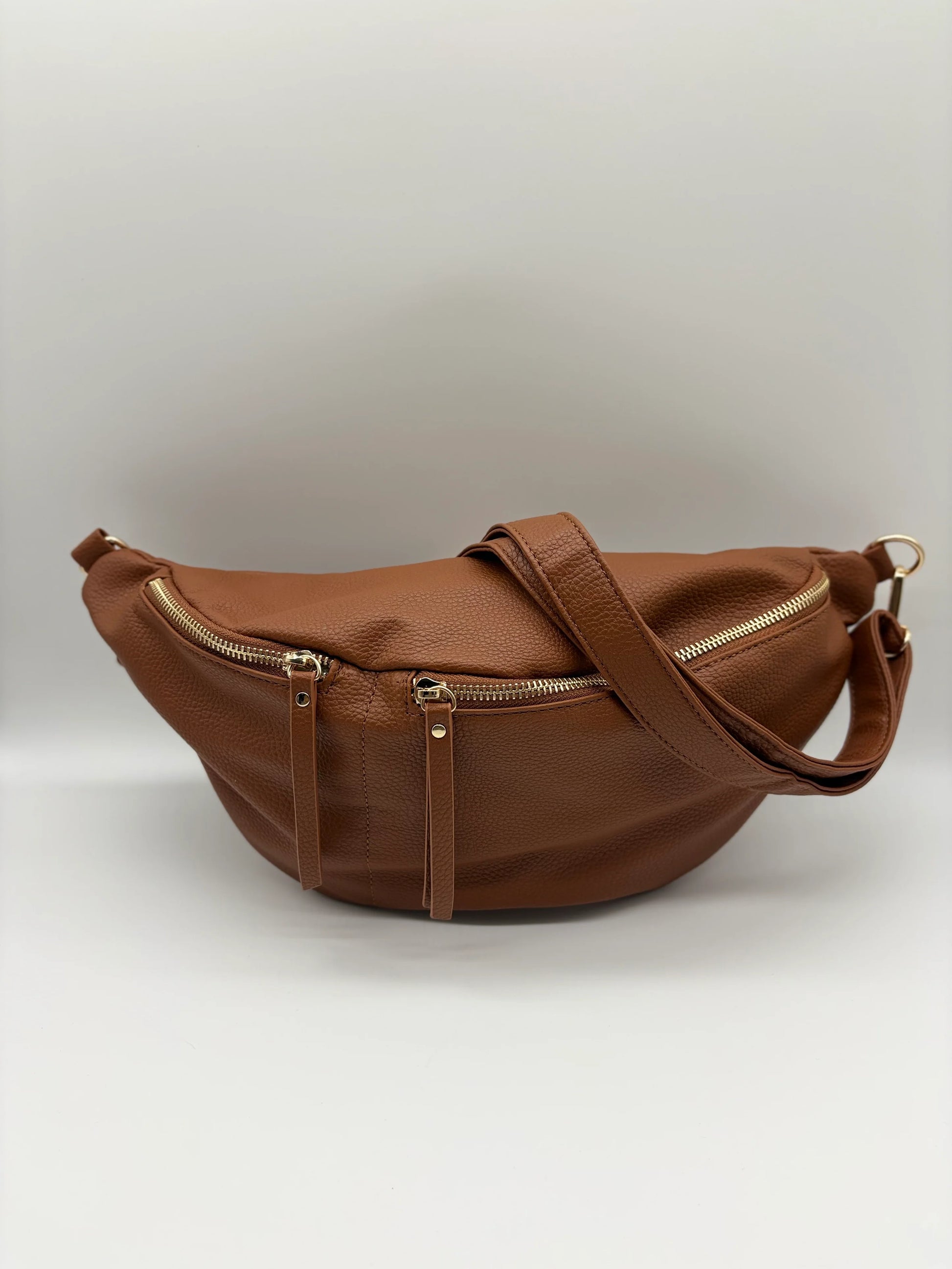 Snygg väska som du bär cross over, det är dragkedjor som går i guld och ett justerbart axelband.