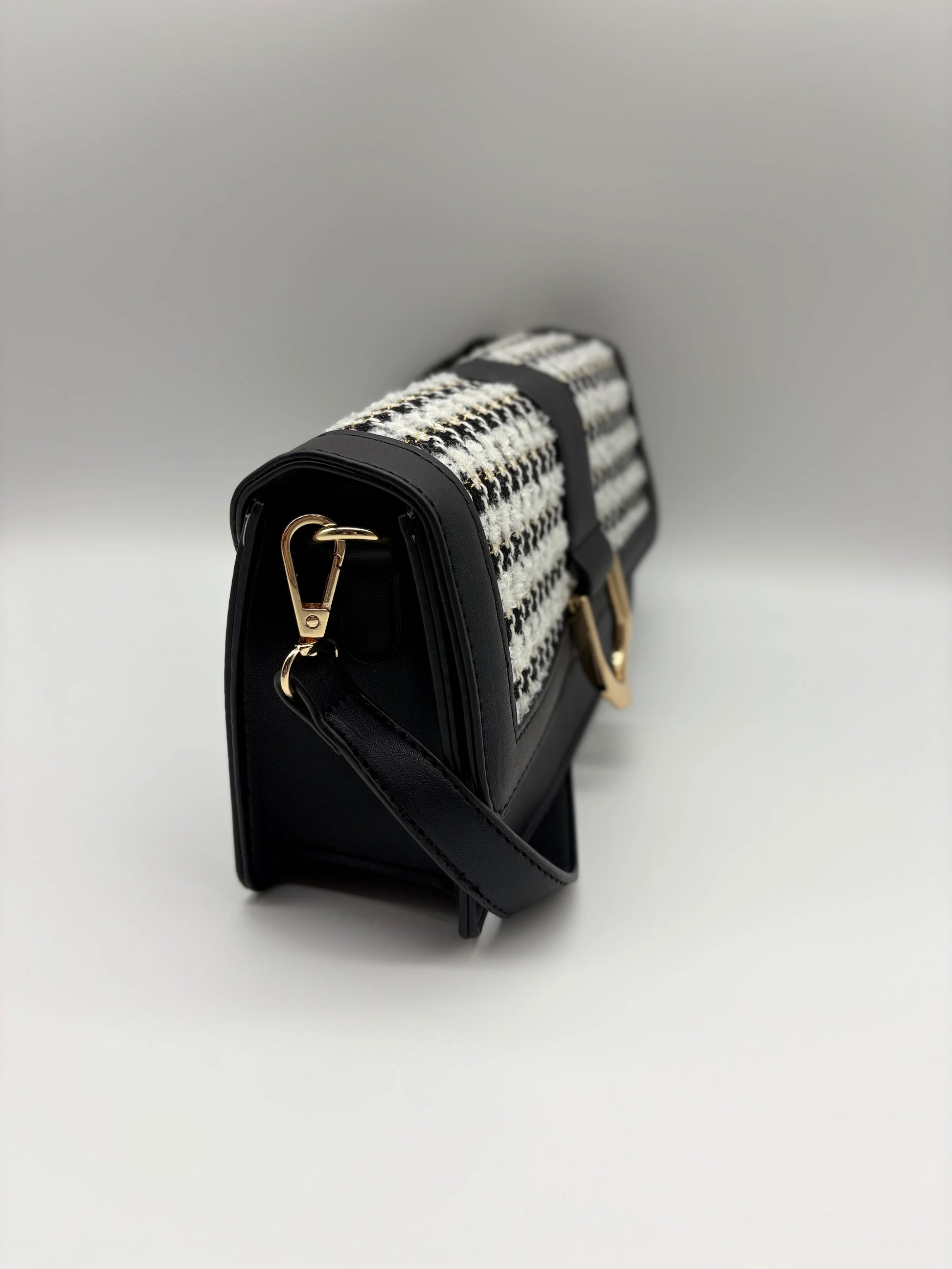 Elegant väska i svart som passar till alla höstens festligheter, det ingår två olika axelband så du kan bära den på olika sätt.